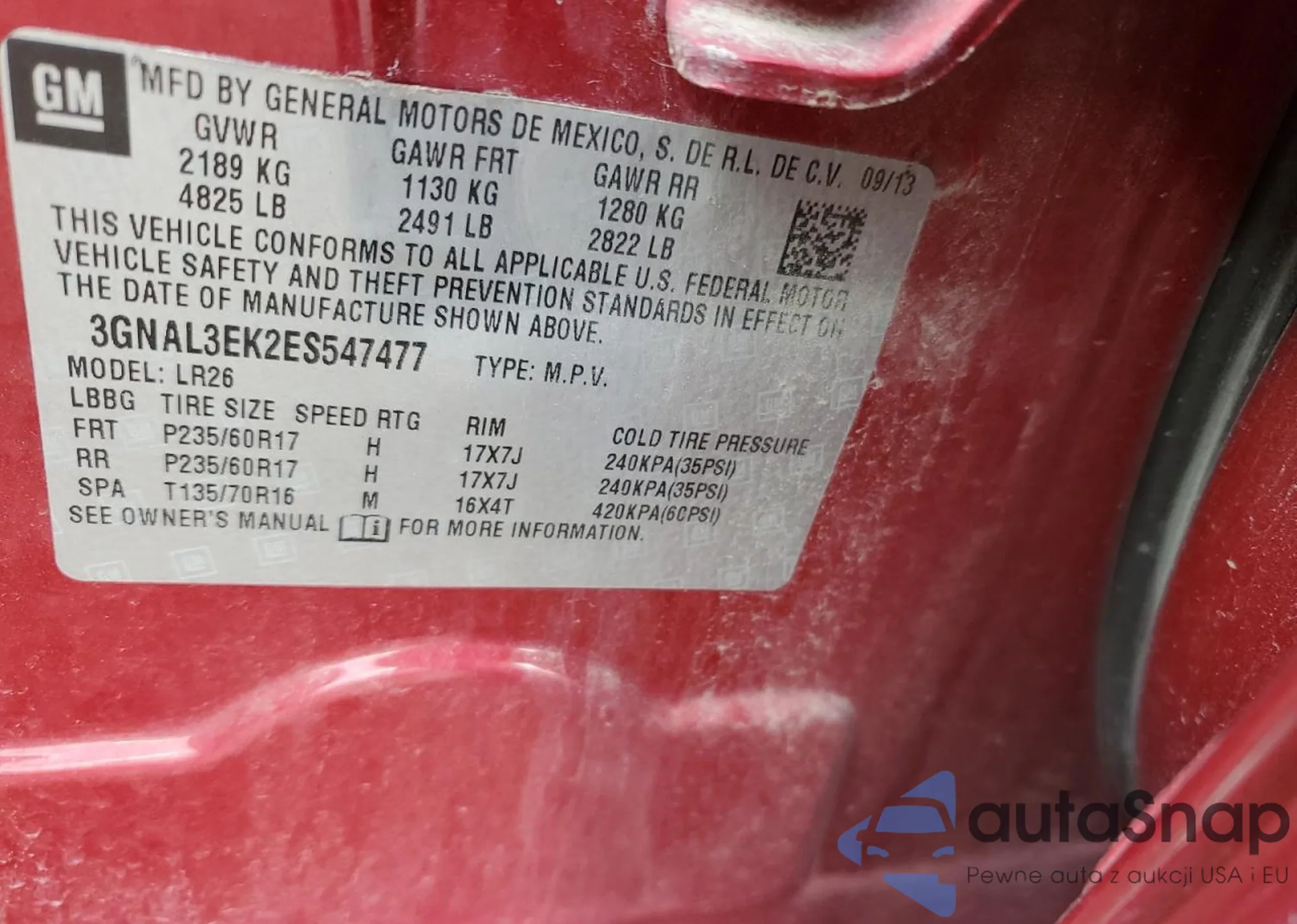 • VIN: 3GNAL3EK2ES547477