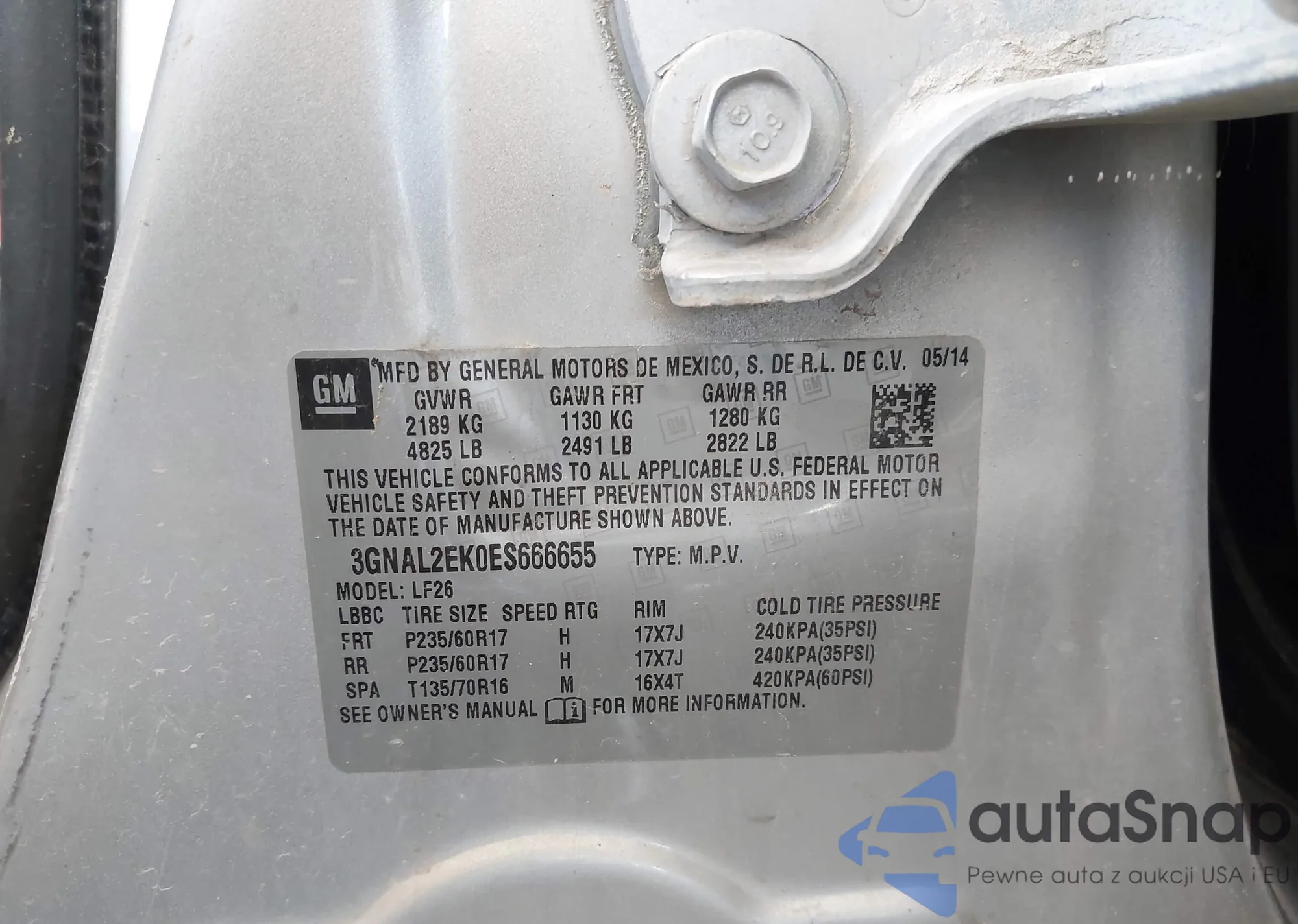VIN: 3GNAL2EK0ES666655