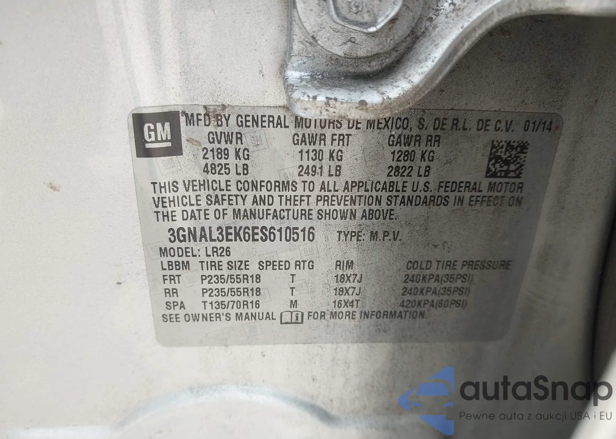 • VIN: 3GNAL3EK6ES610516