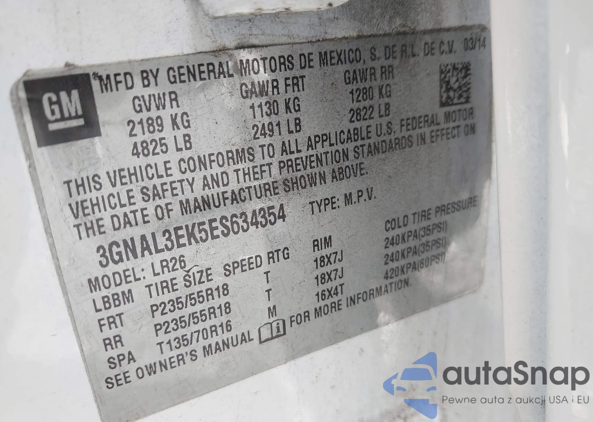 VIN: 3GNAL3EK5ES634354