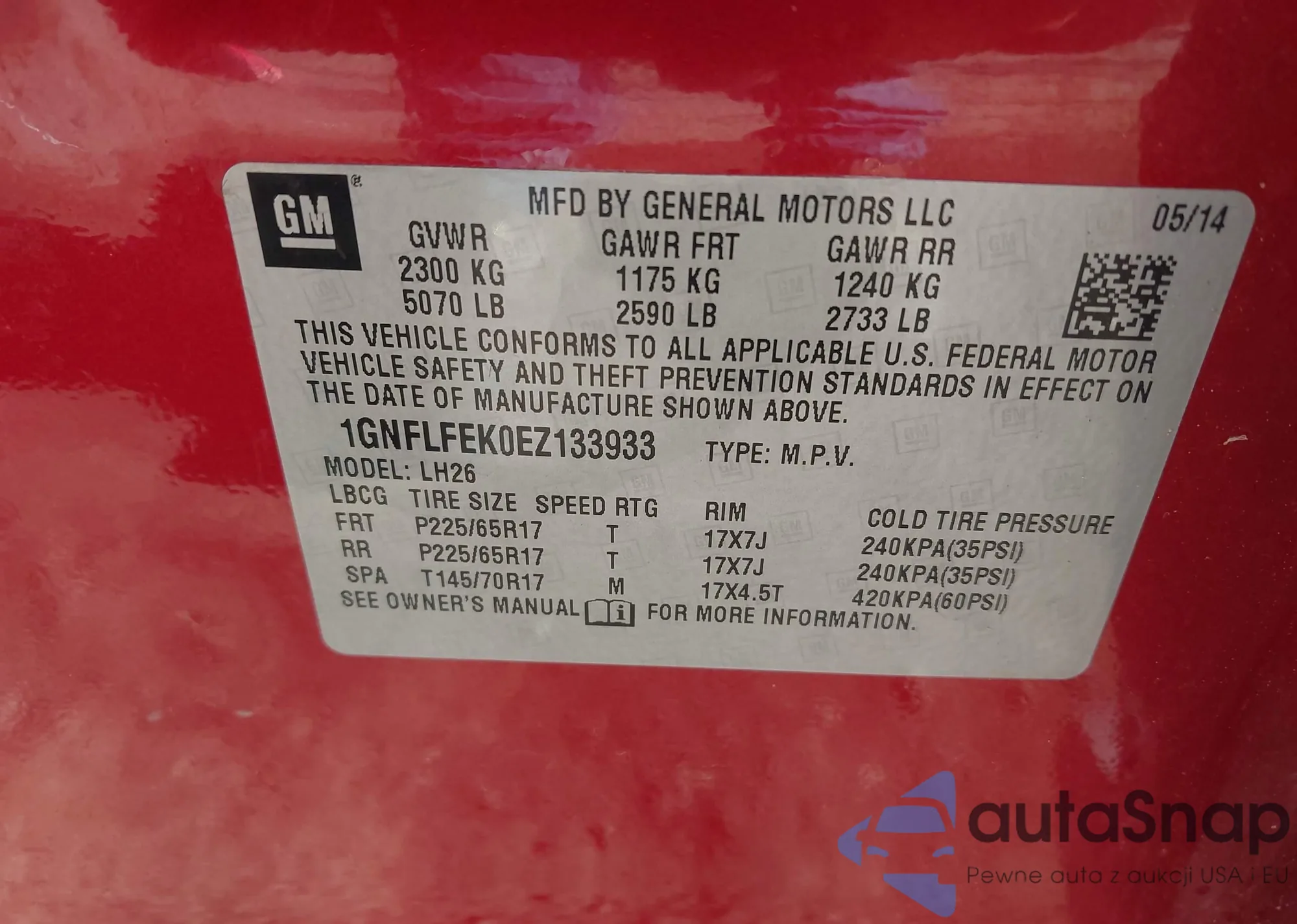 VIN: 1GNFLFEK0EZ133933