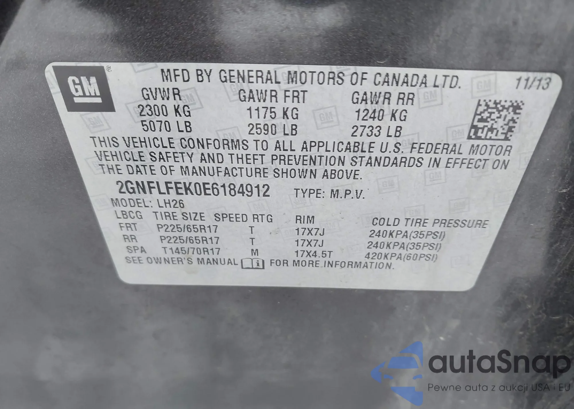 VIN: 2GNFLFEK0E6184912