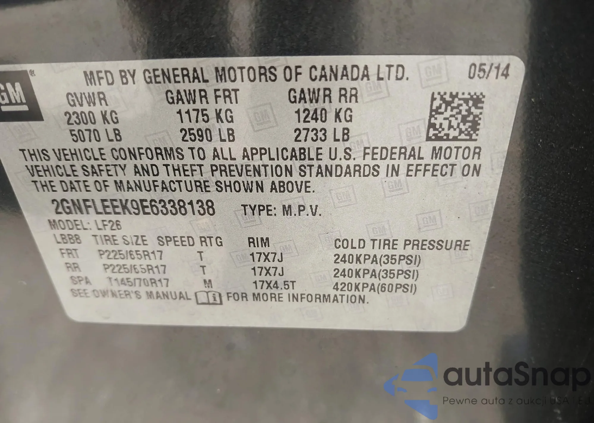 VIN: 2GNFLEEK9E6338138