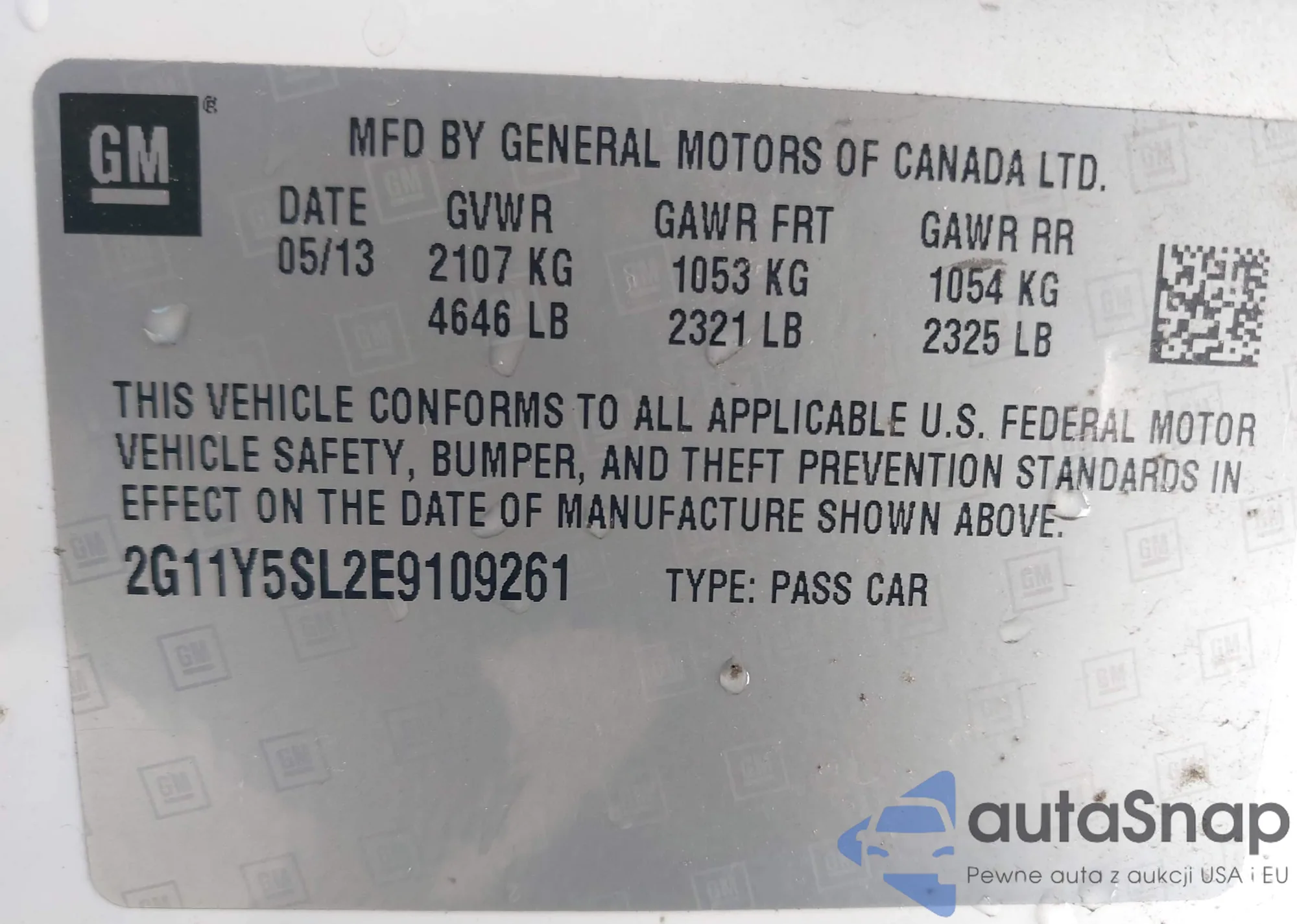 VIN: 2G11Y5SL2E9109261