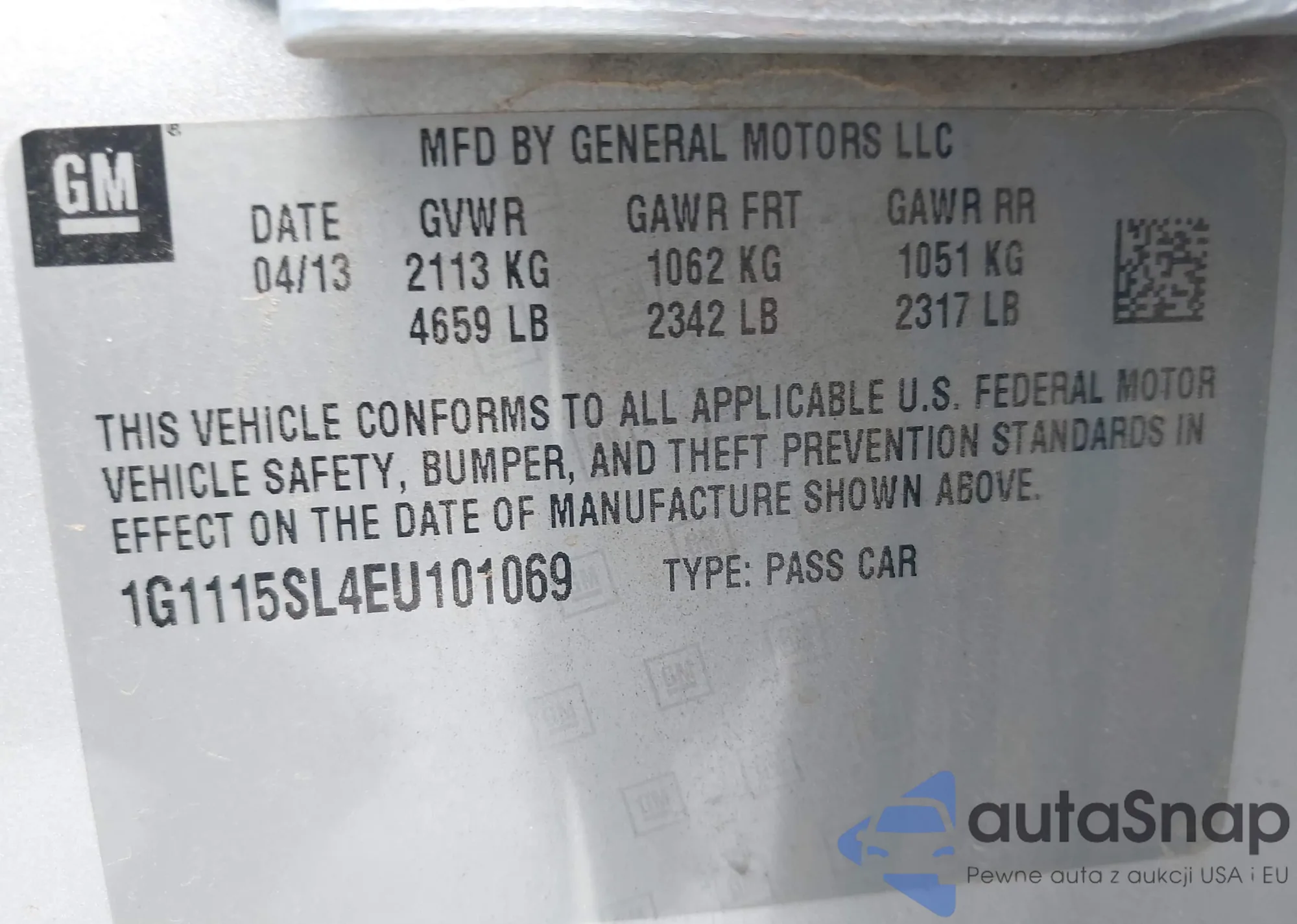 Samochód Chevrolet Impala 2014 (VIN 1G1115SL4EU101069) nie był wcześniej licytowany. Dokumenty są czyste, przebieg odpowiada lub jest niższy niż średnia rynku. Sprzedaje go firma ubezpieczeniowa – polecamy zakup. Dostawa do portu zajmie ok. 6–8 tygodni.