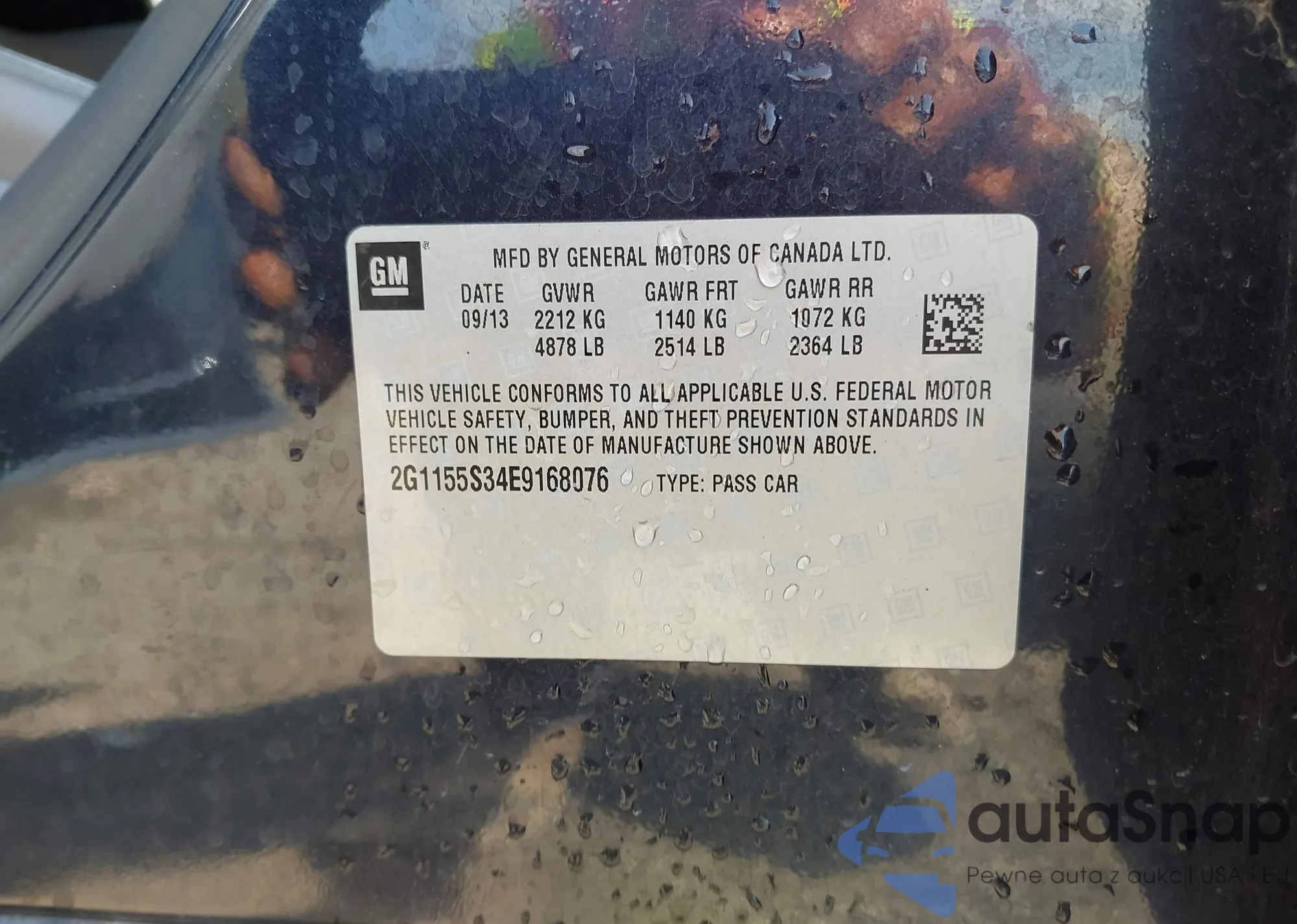 VIN: 2G1155S34E9168076
