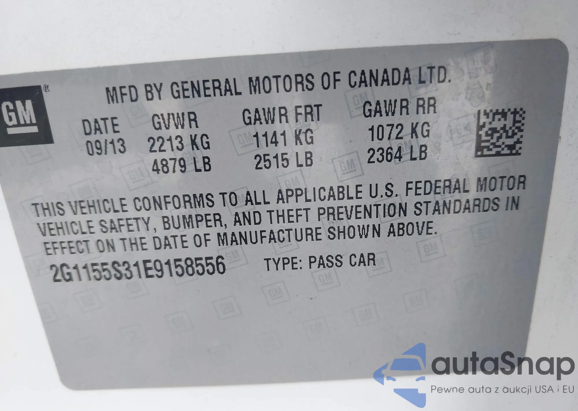 VIN: 2G1155S31E9158556