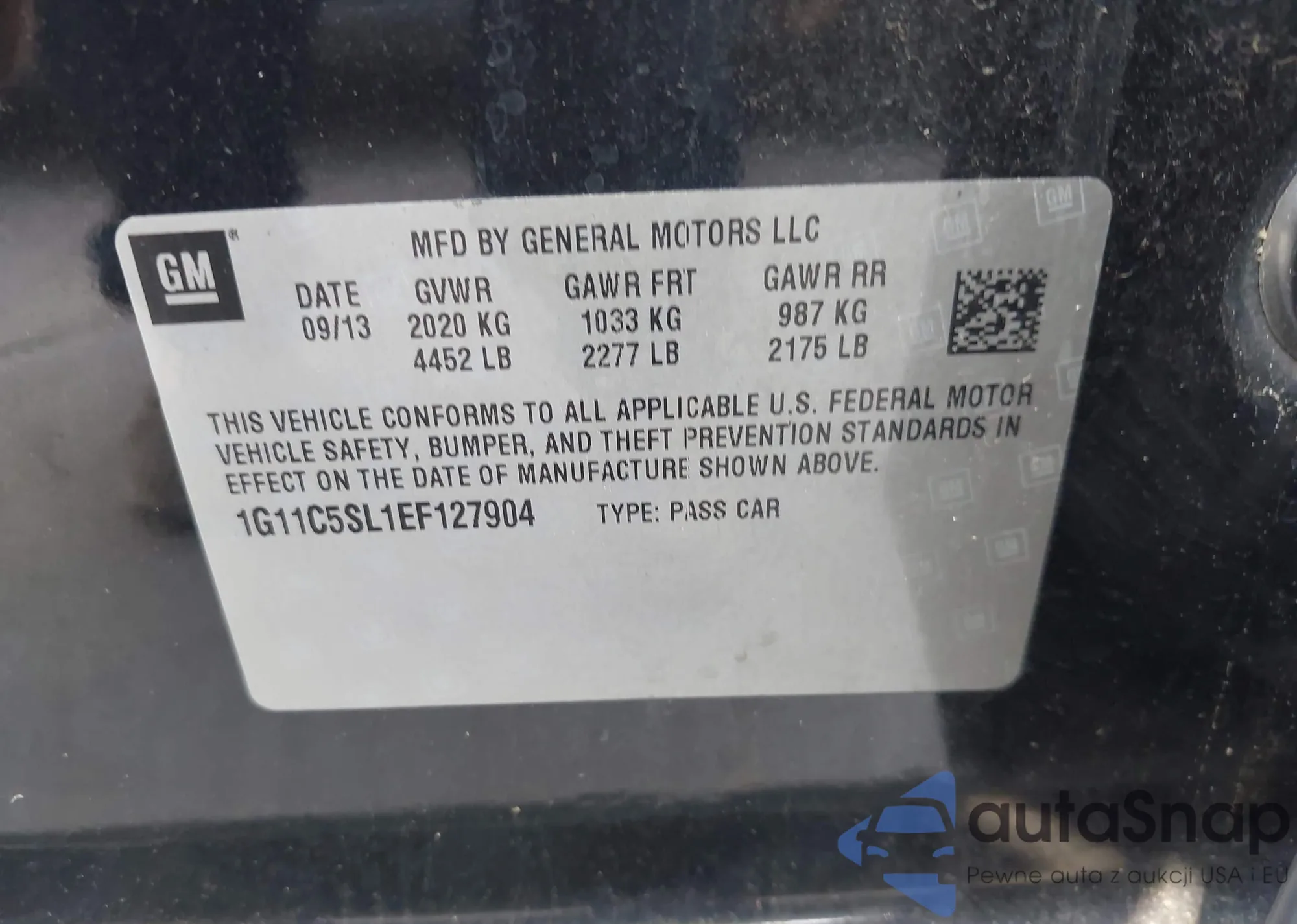 • VIN: 1G11C5SL1EF127904