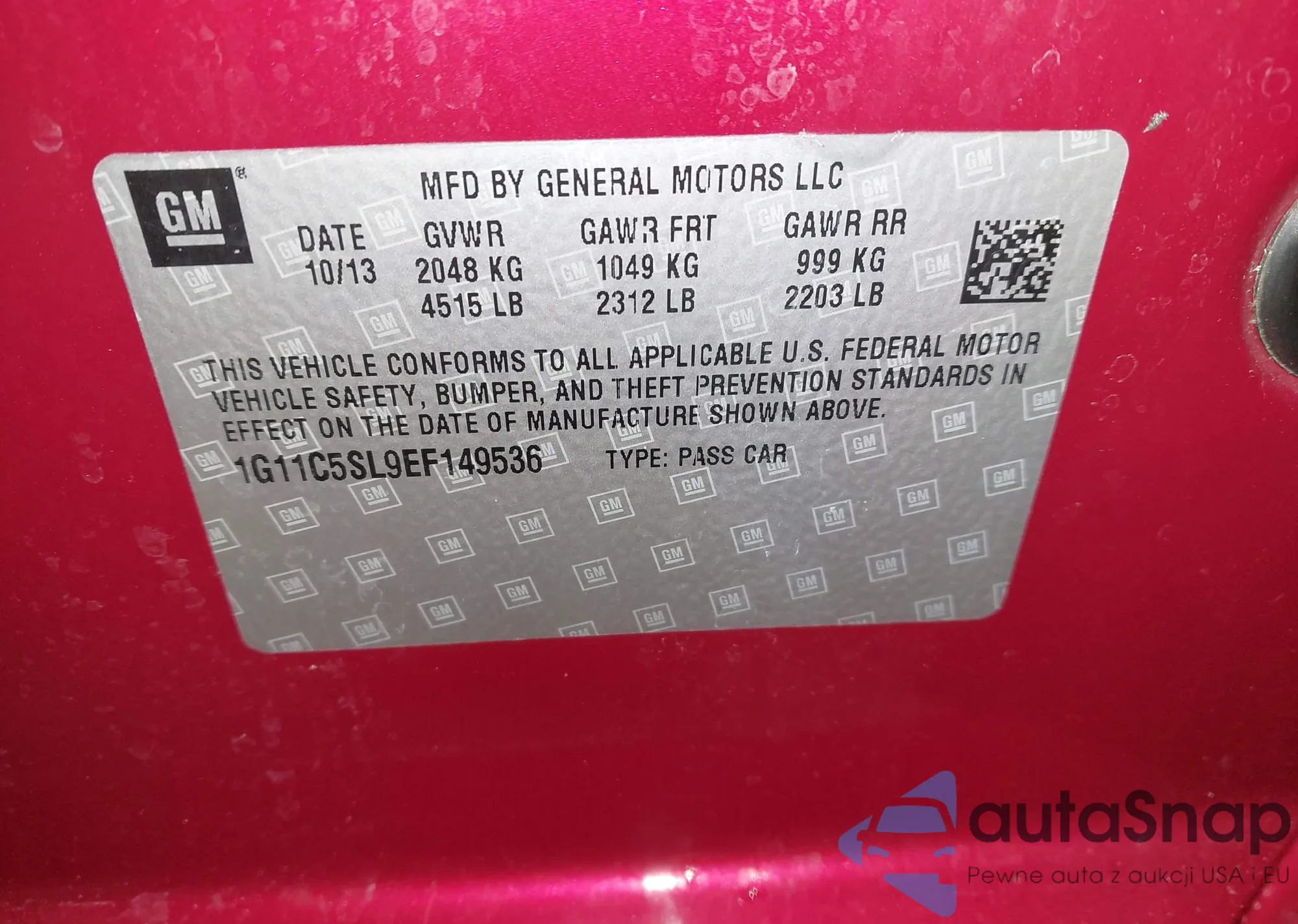 Samochód Chevrolet Malibu 2014 (VIN 1G11C5SL9EF149536) nie był wcześniej licytowany. Dokumenty są czyste, przebieg odpowiada lub jest niższy niż średnia rynku. Sprzedaje go firma ubezpieczeniowa – polecamy zakup. Dostawa do portu zajmie ok. 6–8 tygodni.