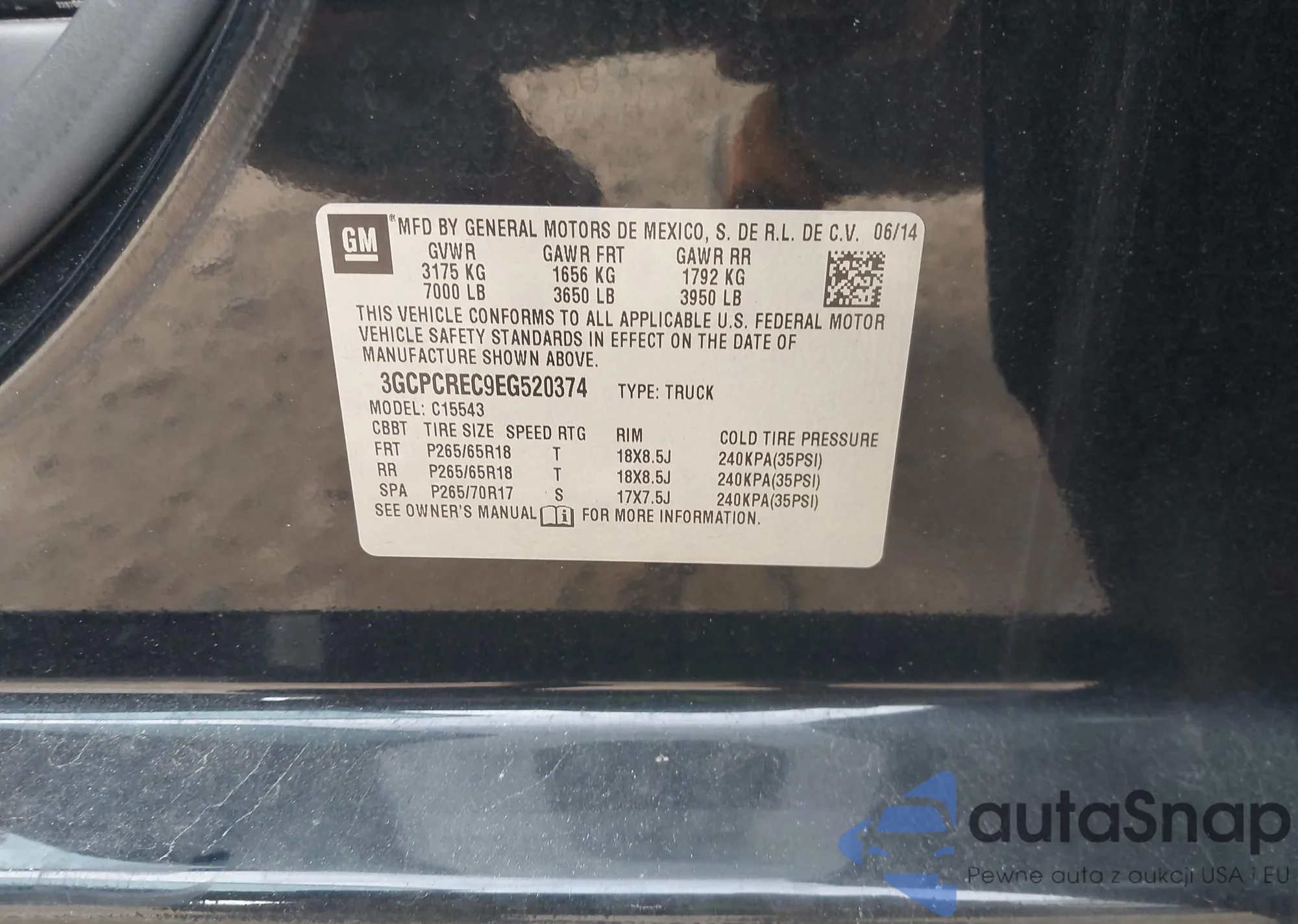 • VIN: 3GCPCREC9EG520374