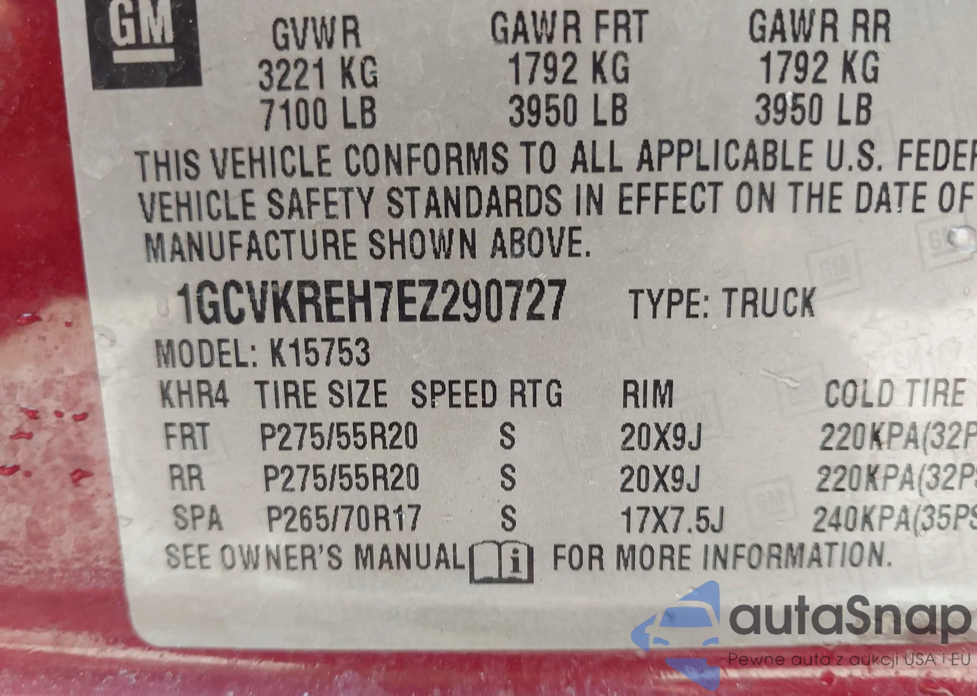 • VIN: 1GCVKREH7EZ290727