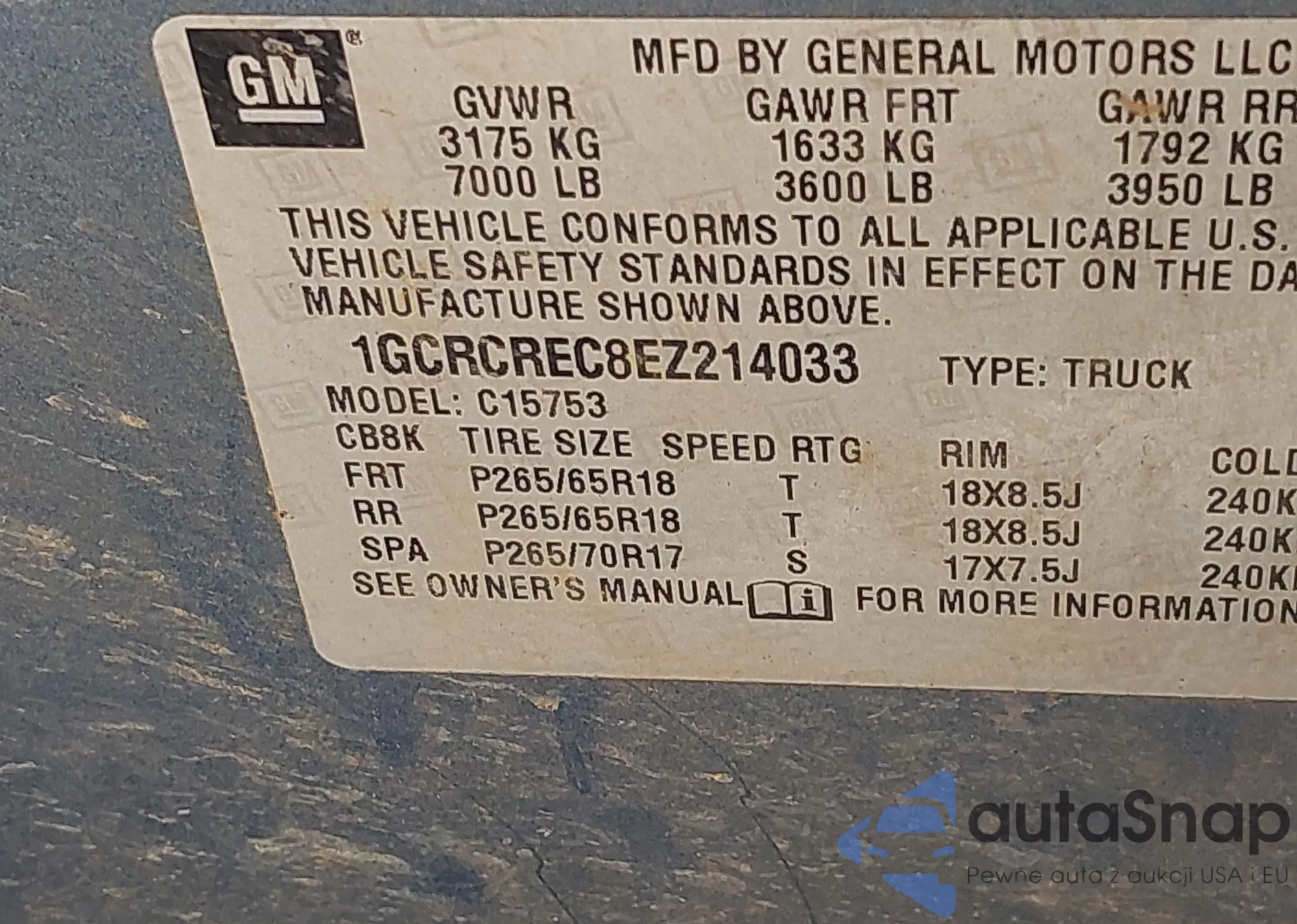 VIN: 1GCRCREC8EZ214033