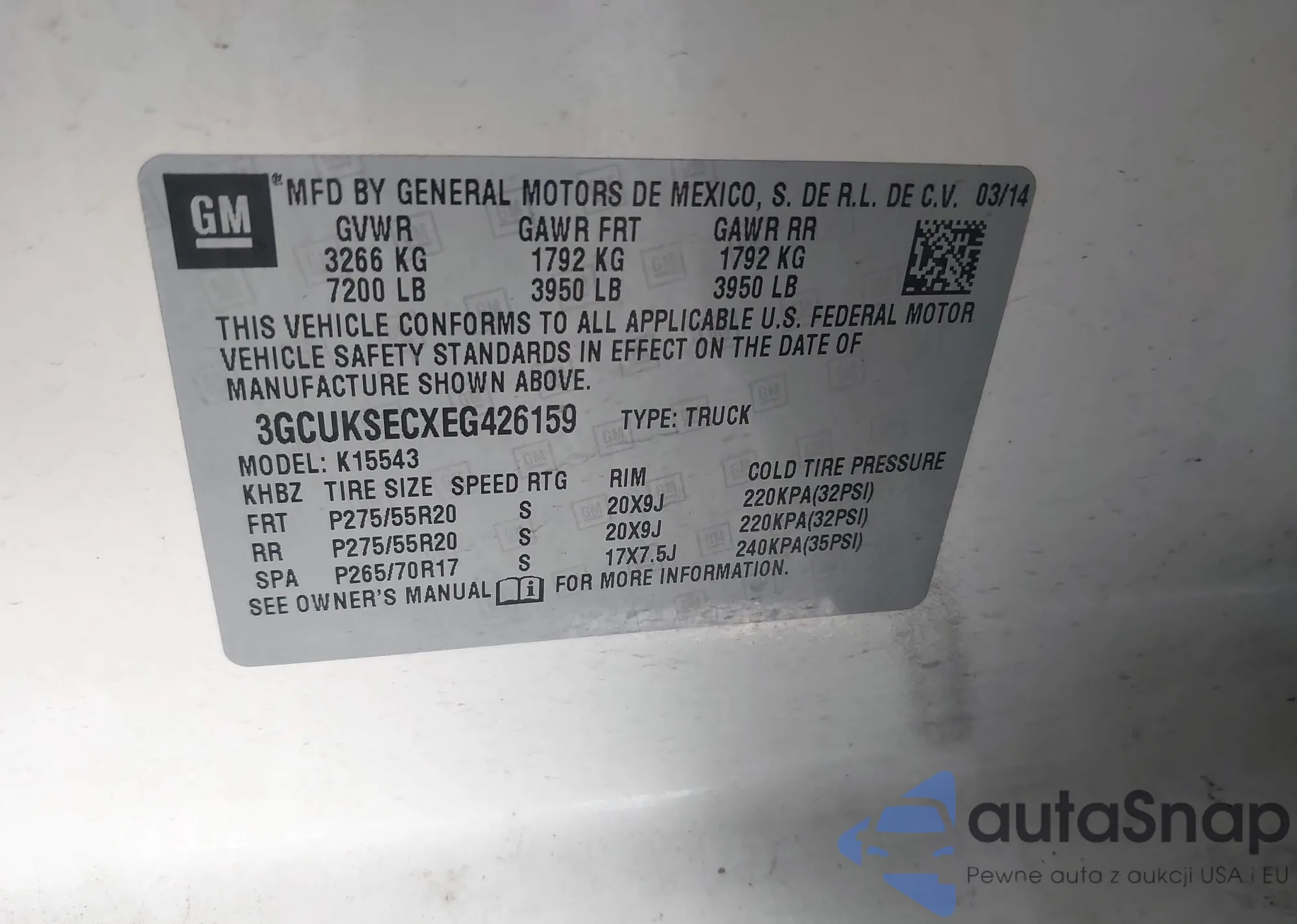 VIN: 3GCUKSECXEG426159