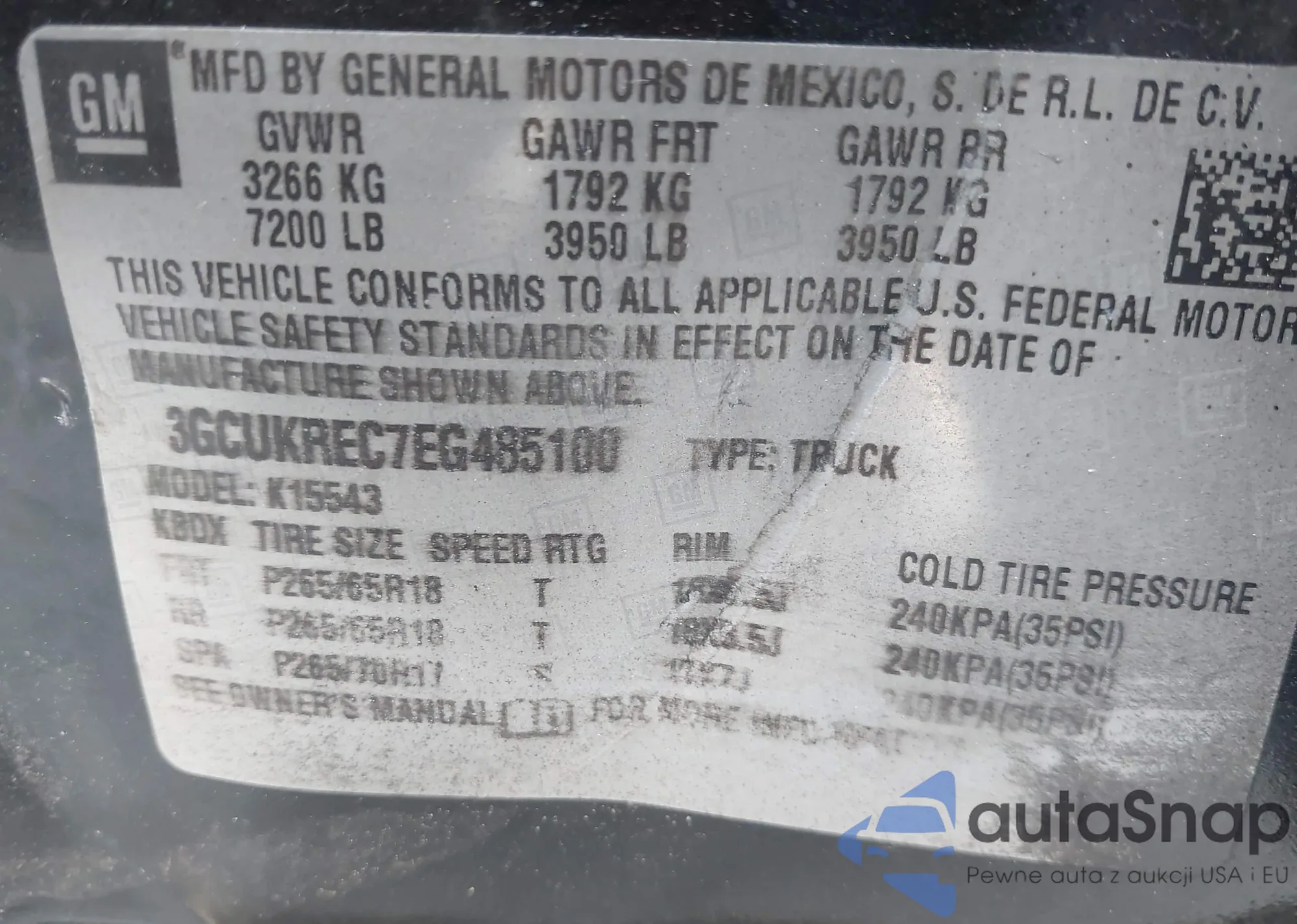 VIN: 3GCUKREC7EG485100