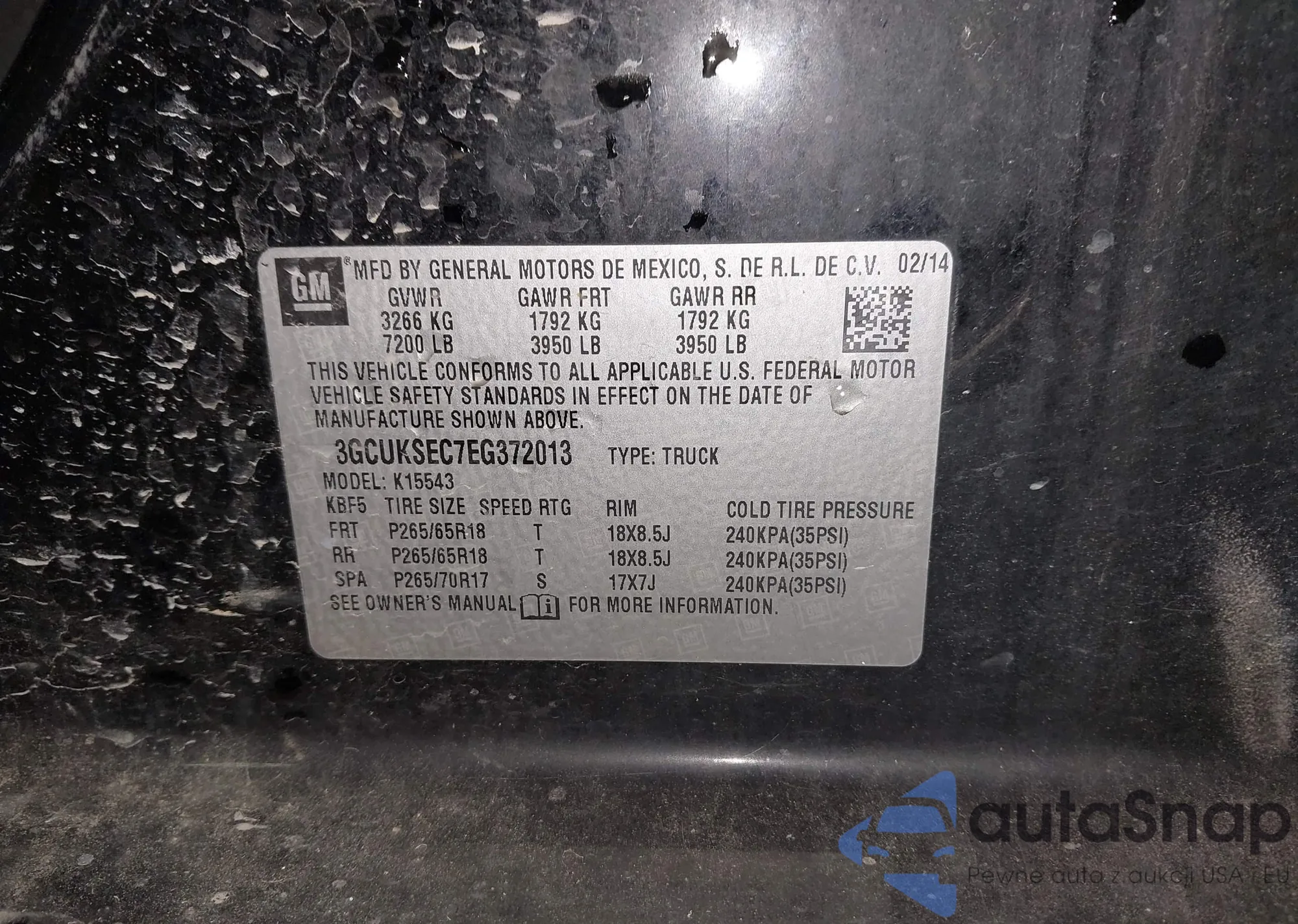 Samochód Chevrolet Silverado 2014 (VIN 3GCUKSEC7EG372013) nie był wcześniej licytowany. Dokumenty są czyste, przebieg odpowiada lub jest niższy niż średnia rynku. Sprzedaje go firma ubezpieczeniowa – polecamy zakup. Dostawa do portu zajmie ok. 6–8 tygodni.