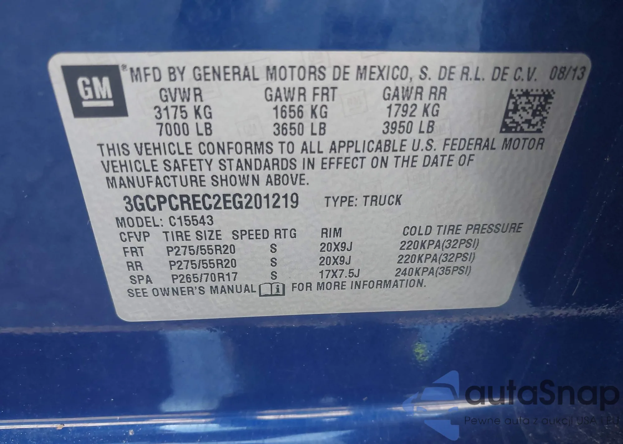 • VIN: 3GCPCREC2EG201219