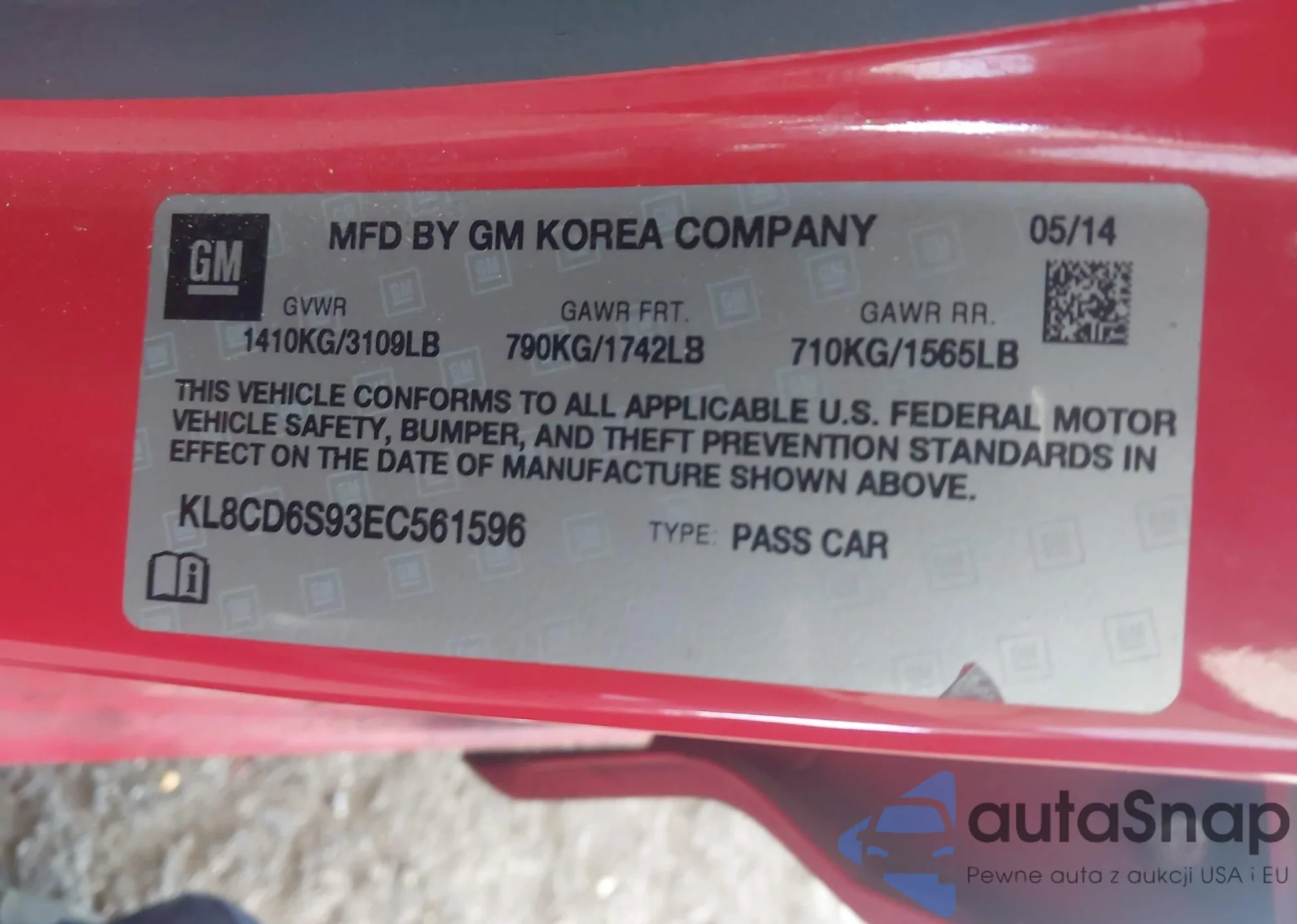 • VIN: KL8CD6S93EC561596