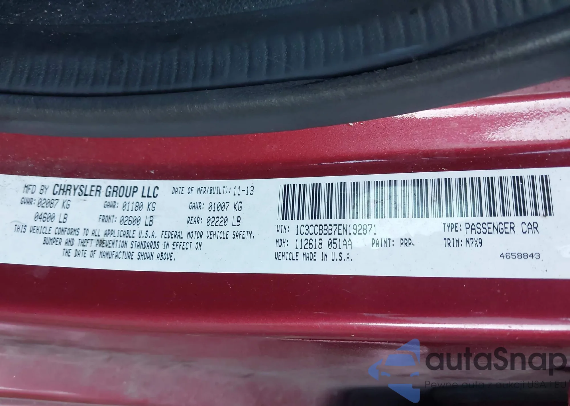 VIN: 1C3CCBBB7EN192871