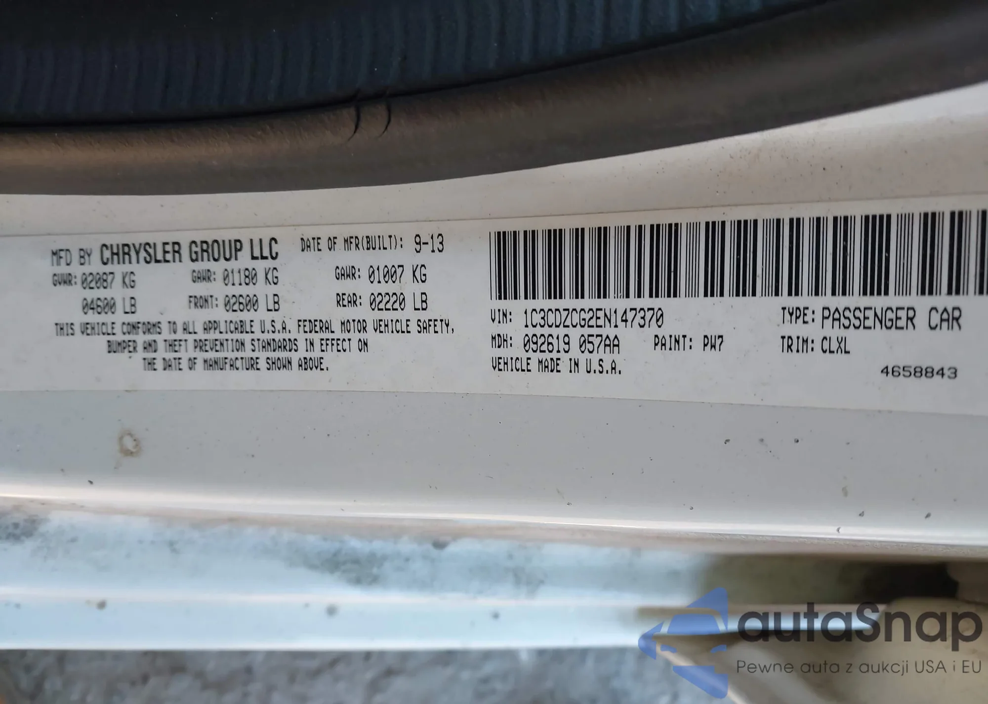 Samochód Dodge Avenger 2014 (VIN 1C3CDZCG2EN147370) nie był wcześniej licytowany. Dokumenty są czyste, przebieg odpowiada lub jest niższy niż średnia rynku. Sprzedaje go firma ubezpieczeniowa – polecamy zakup. Dostawa do portu zajmie ok. 6–8 tygodni.