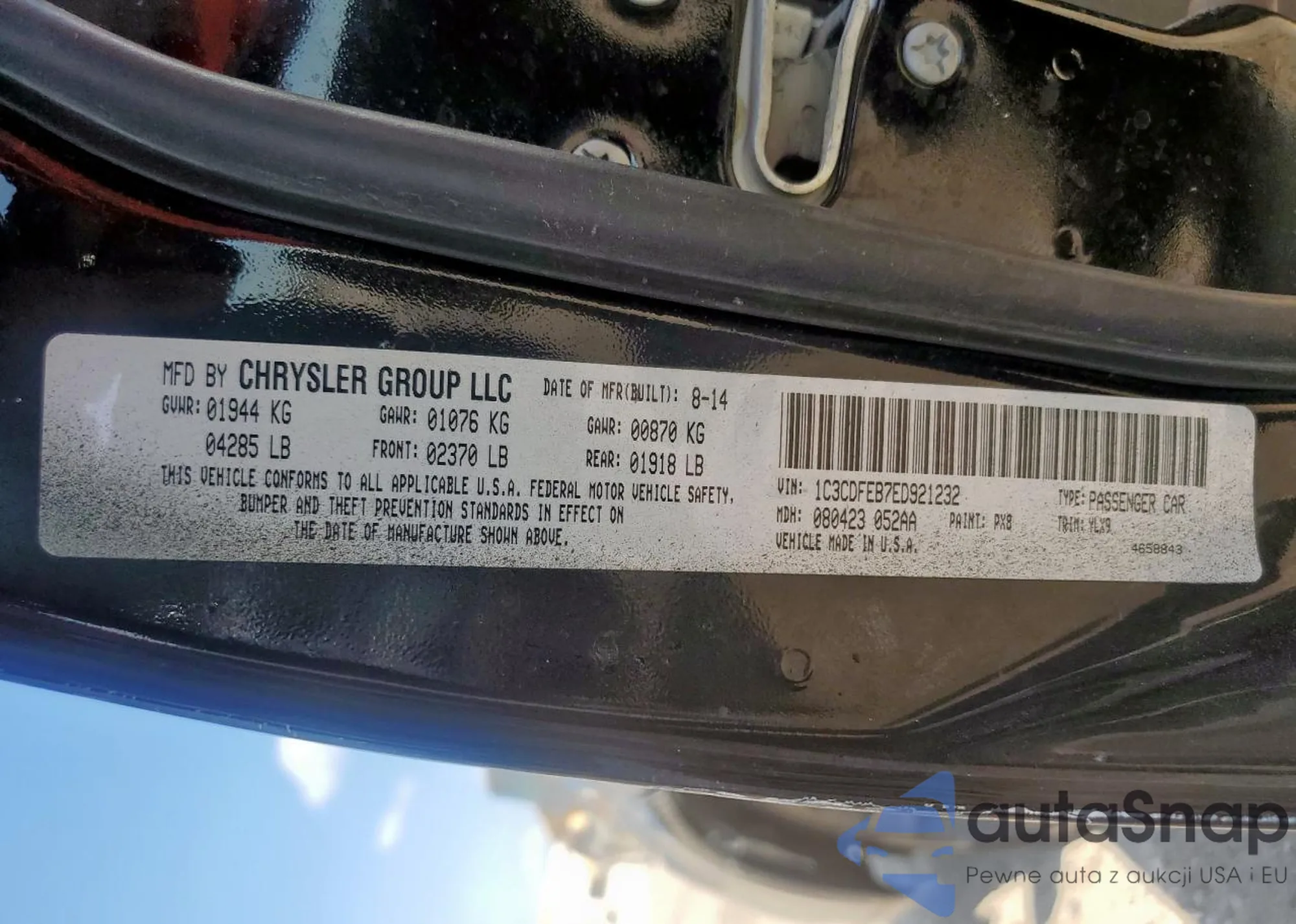 VIN: 1C3CDFEB7ED921232