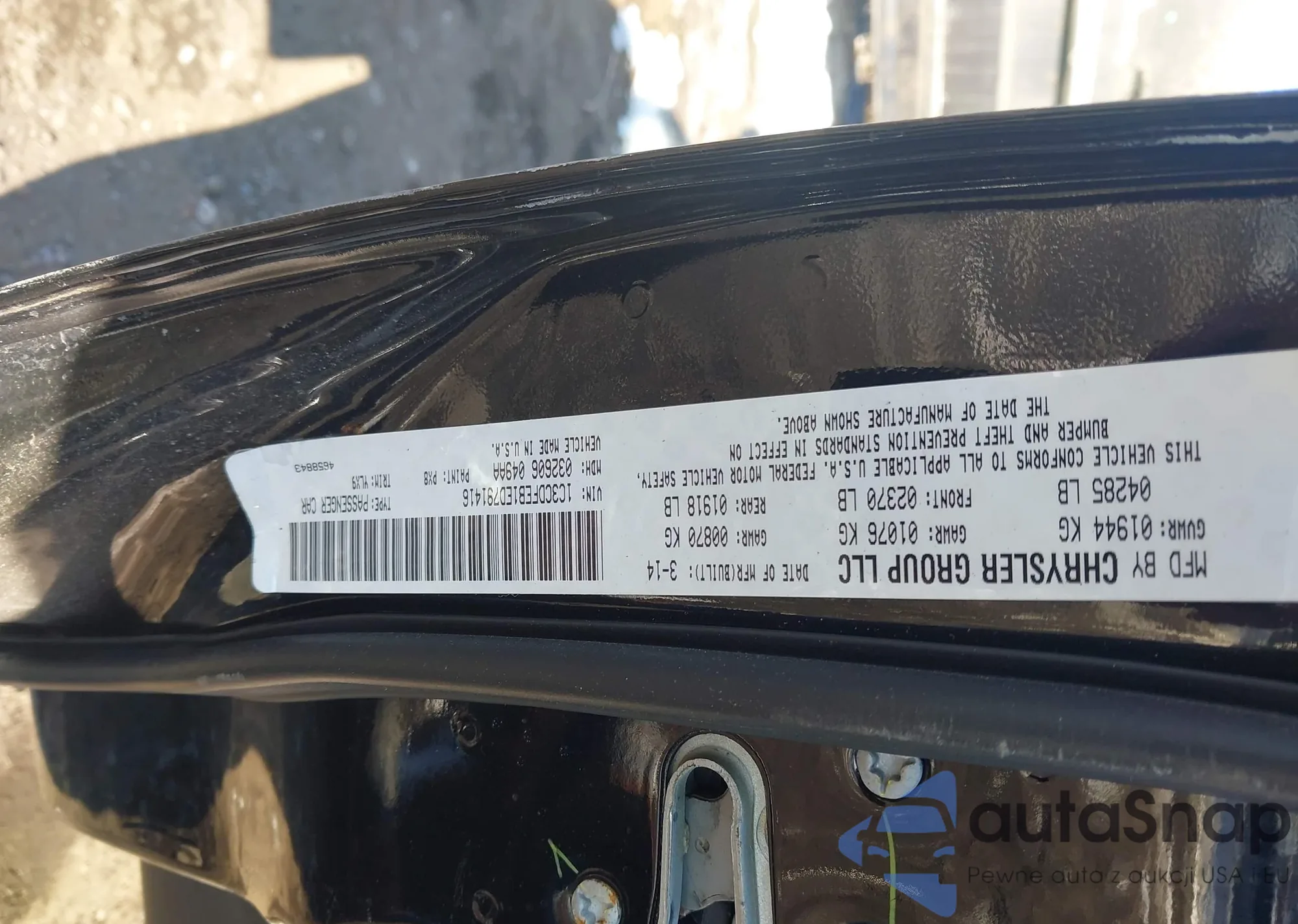 • VIN: 1C3CDFEB1ED791416