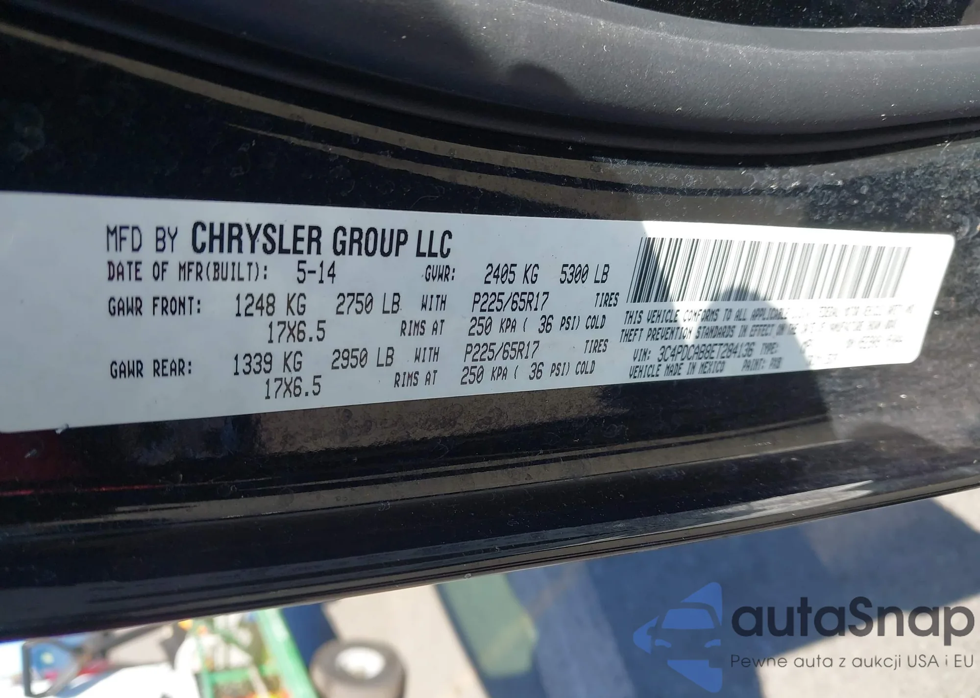 Samochód Dodge Journey 2014 (VIN 3C4PDCAB8ET284136) ma dokumenty uniemożliwiające rejestrację. Mogą pojawić się trudności przy eksporcie i rejestracji. Skontaktuj się z ekspertami AutaSnap w celu znalezienia alternatywy.