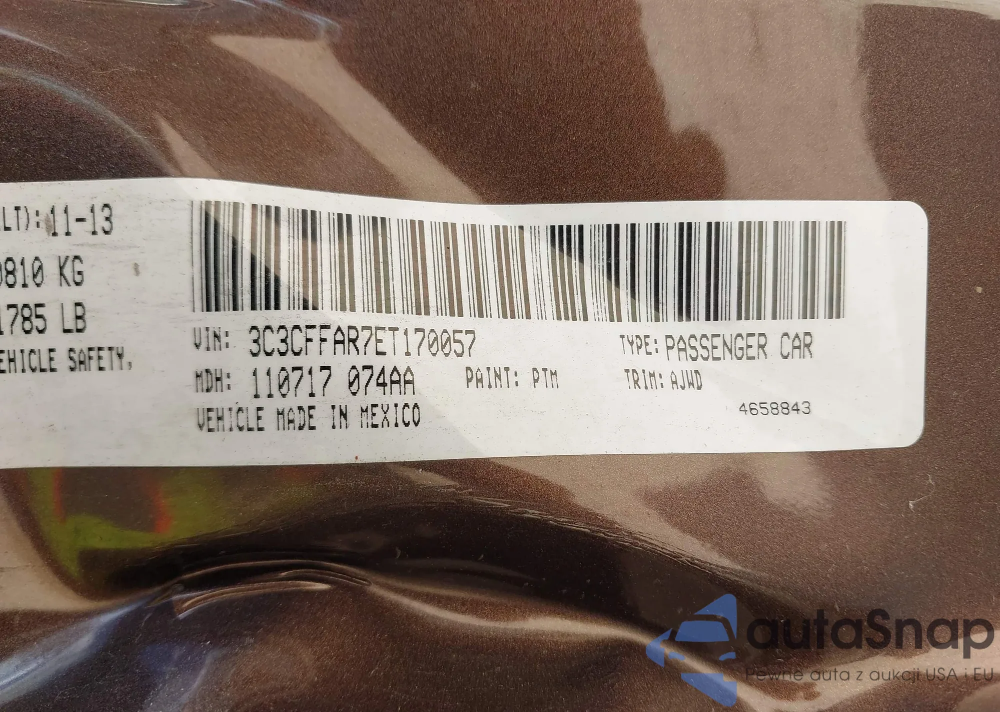 • VIN: 3C3CFFAR7ET170057