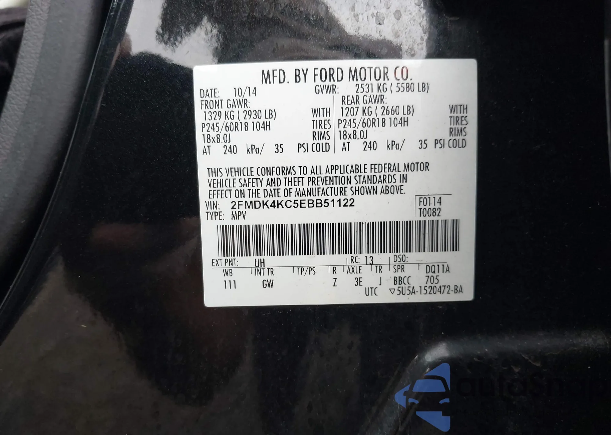 VIN: 2FMDK4KC5EBB51122