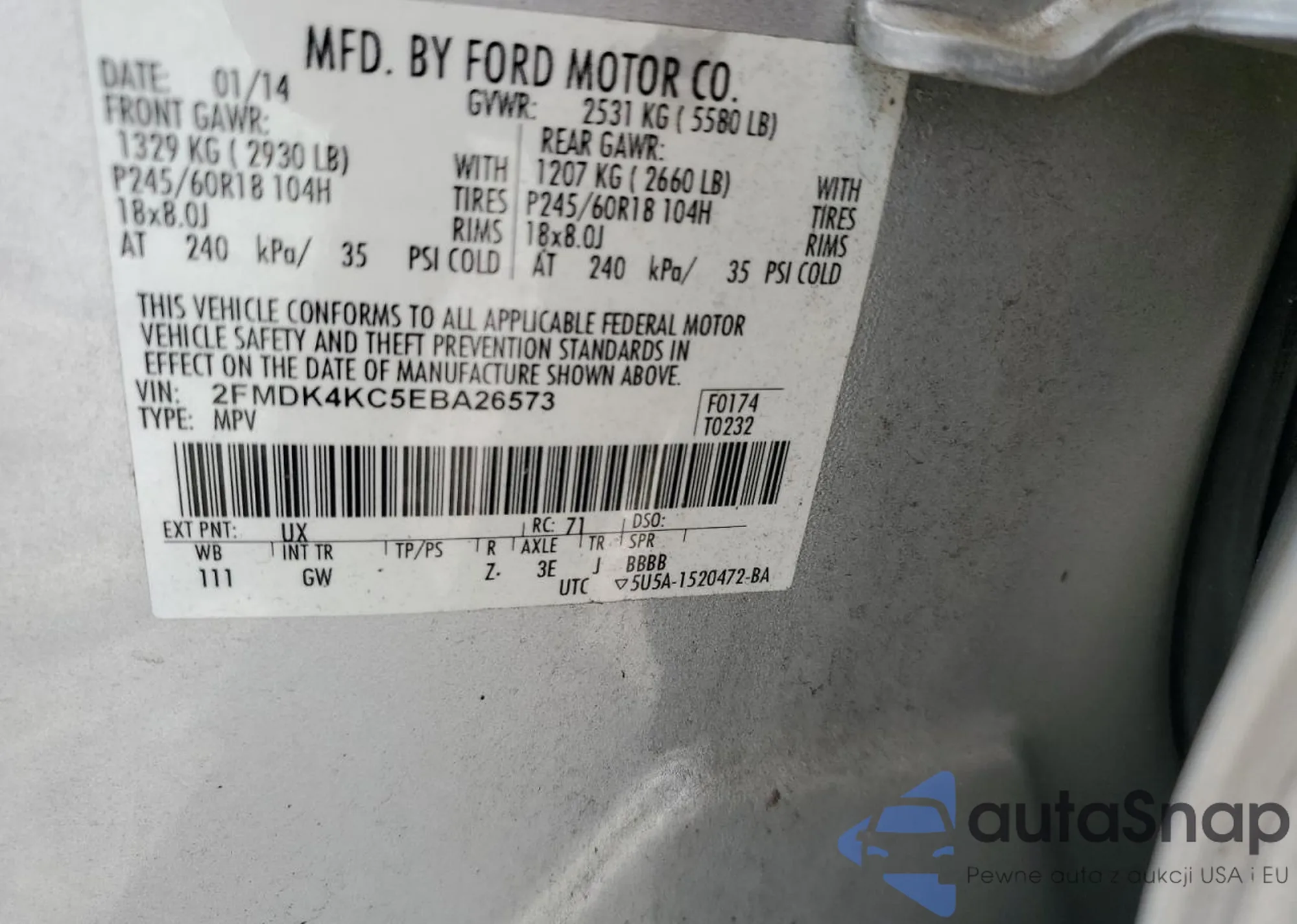 VIN: 2FMDK4KC5EBA26573