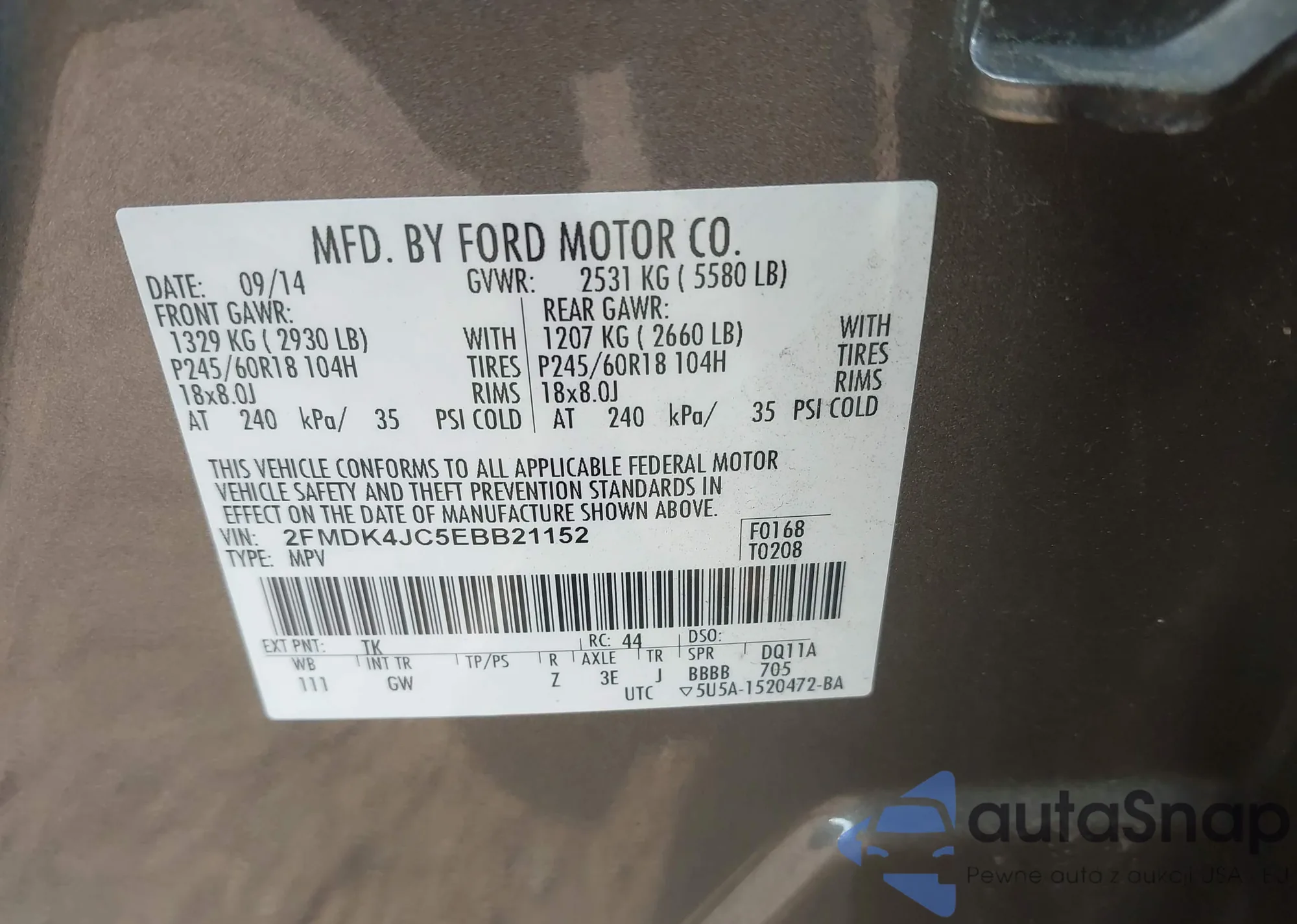 VIN: 2FMDK4JC5EBB21152