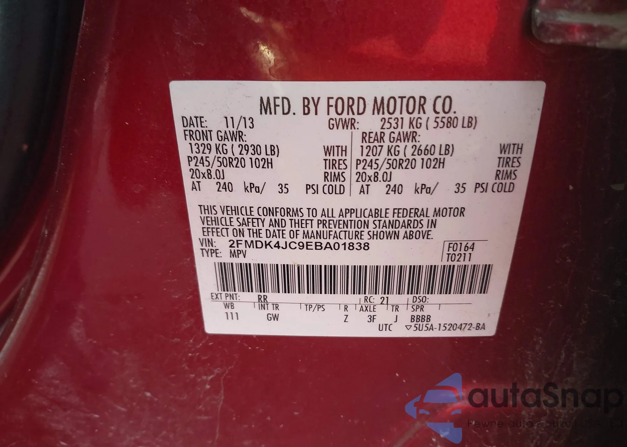 Samochód Ford Edge 2014 (VIN 2FMDK4JC9EBA01838) nie był wcześniej licytowany. Dokumenty są czyste, przebieg odpowiada lub jest niższy niż średnia rynku. Sprzedaje go firma ubezpieczeniowa – polecamy zakup. Dostawa do portu zajmie ok. 6–8 tygodni.