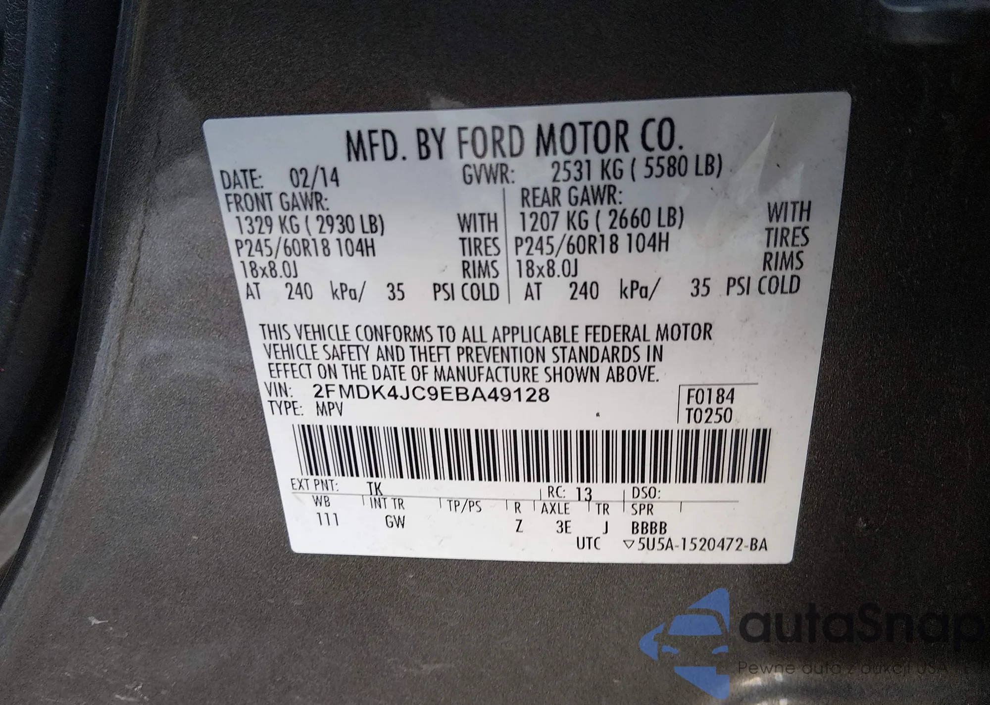 Samochód Ford Edge 2014 (VIN 2FMDK4JC9EBA49128) nie był wcześniej licytowany. Dokumenty są czyste, przebieg odpowiada lub jest niższy niż średnia rynku. Sprzedaje go firma ubezpieczeniowa – polecamy zakup. Dostawa do portu zajmie ok. 6–8 tygodni.