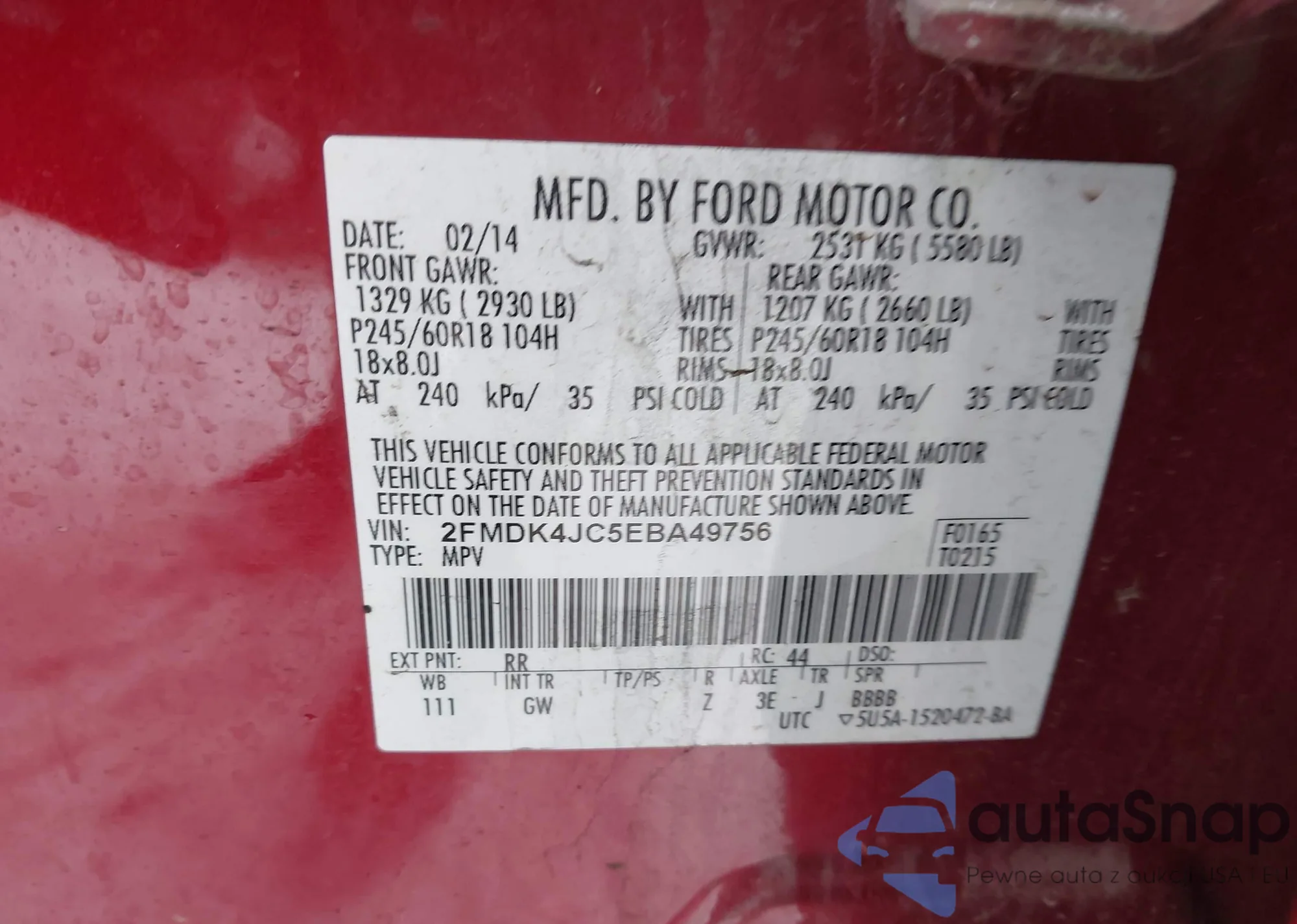 VIN: 2FMDK4JC5EBA49756