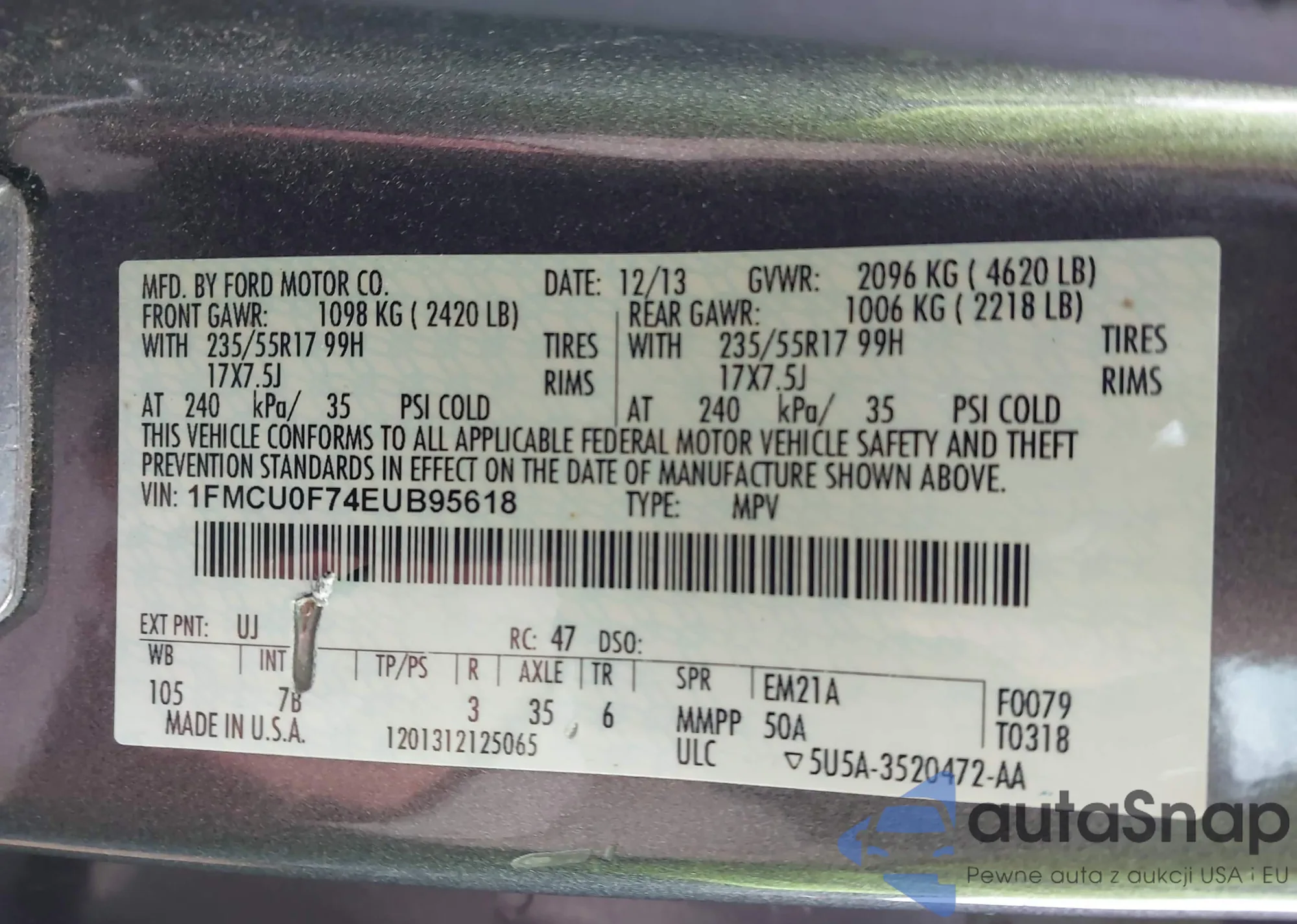 VIN: 1FMCU0F74EUB95618