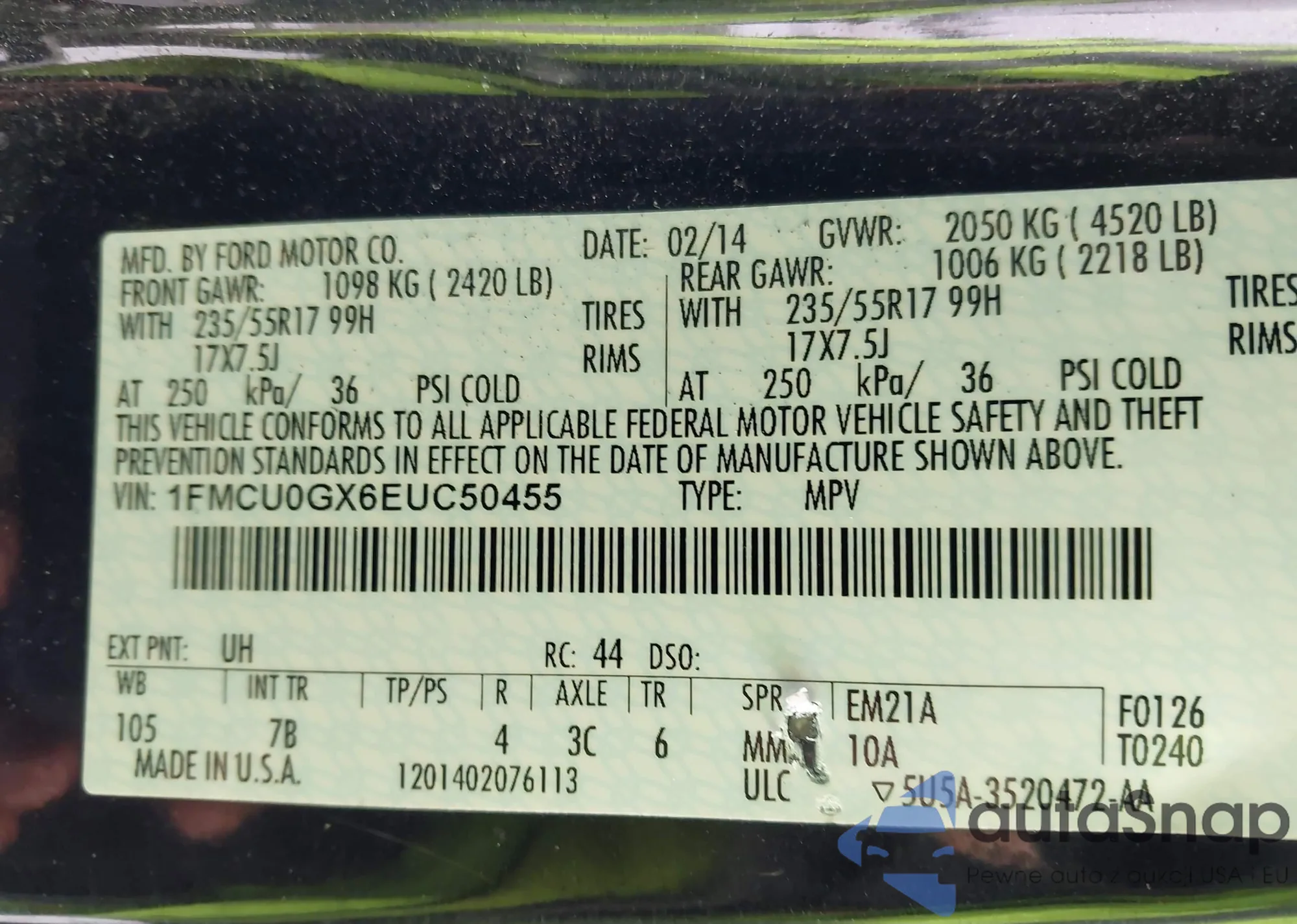 VIN: 1FMCU0GX6EUC50455