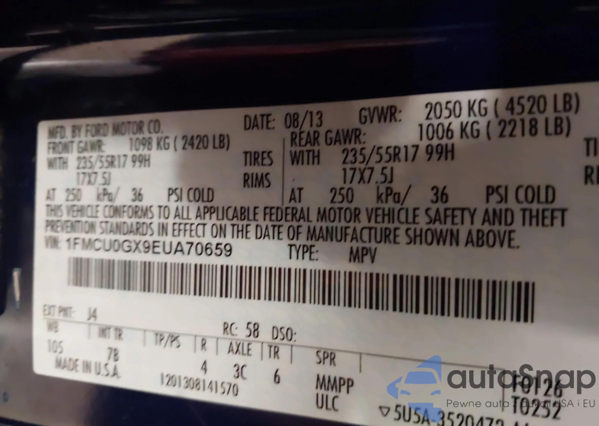 VIN: 1FMCU0GX9EUA70659