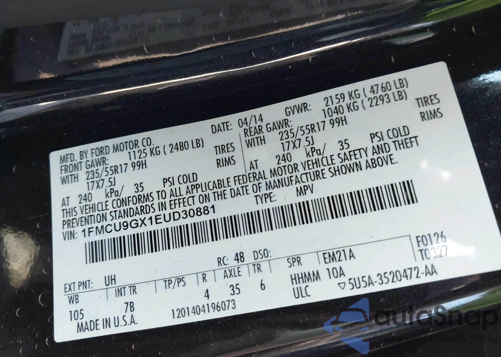 VIN: 1FMCU9GX1EUD30881
