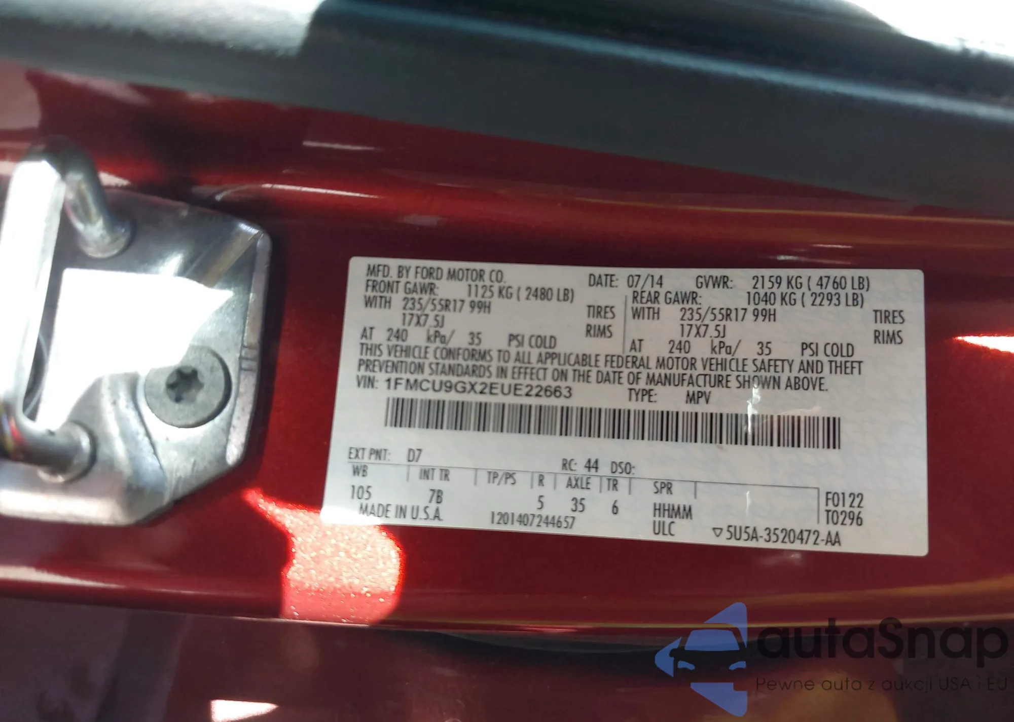 VIN: 1FMCU9GX2EUE22663