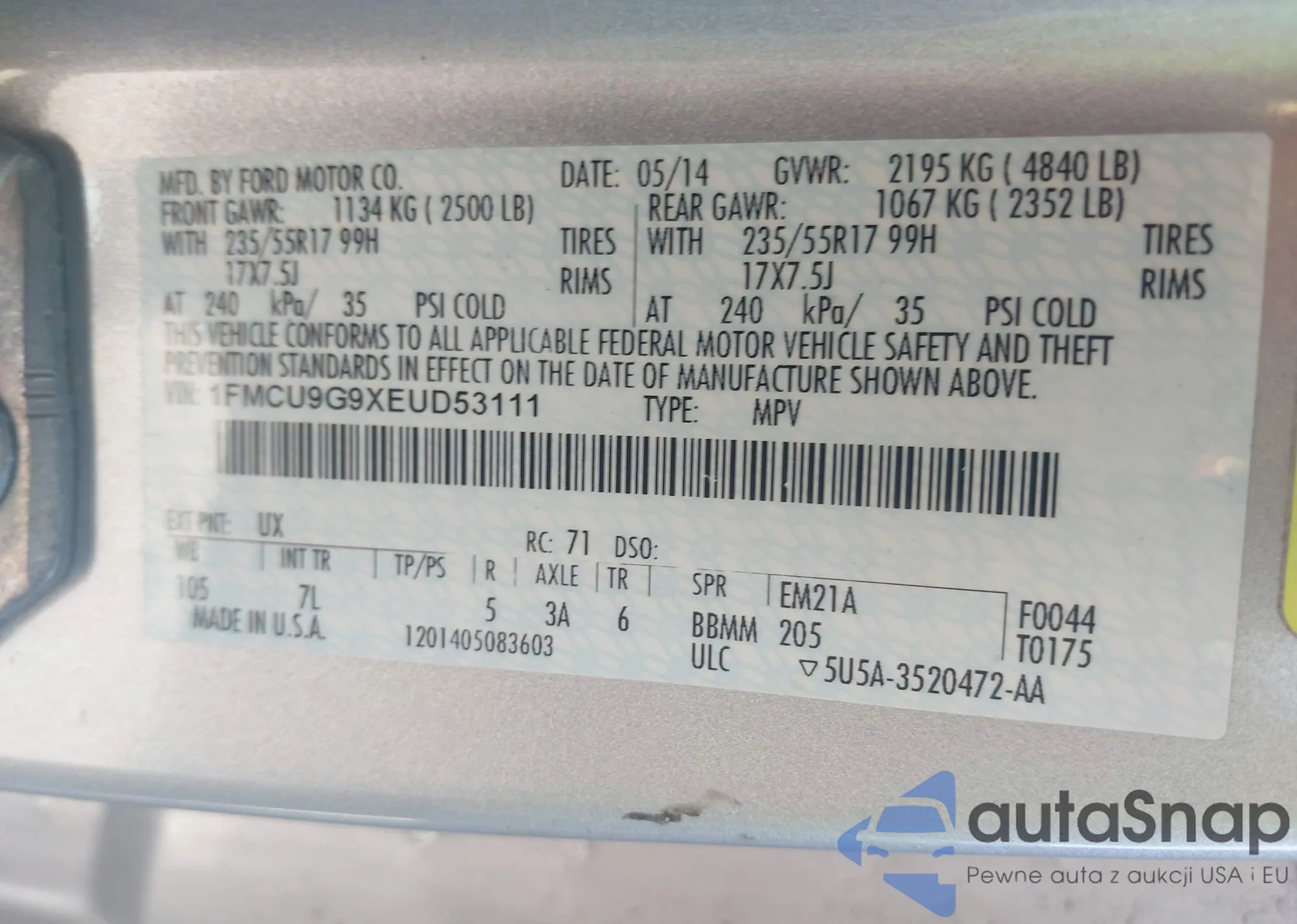 VIN: 1FMCU9G9XEUD53111