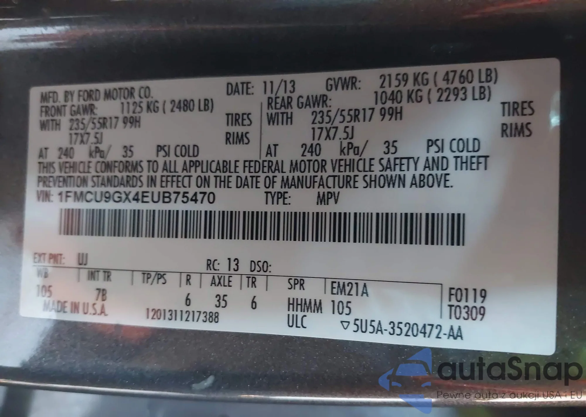 VIN: 1FMCU9GX4EUB75470
