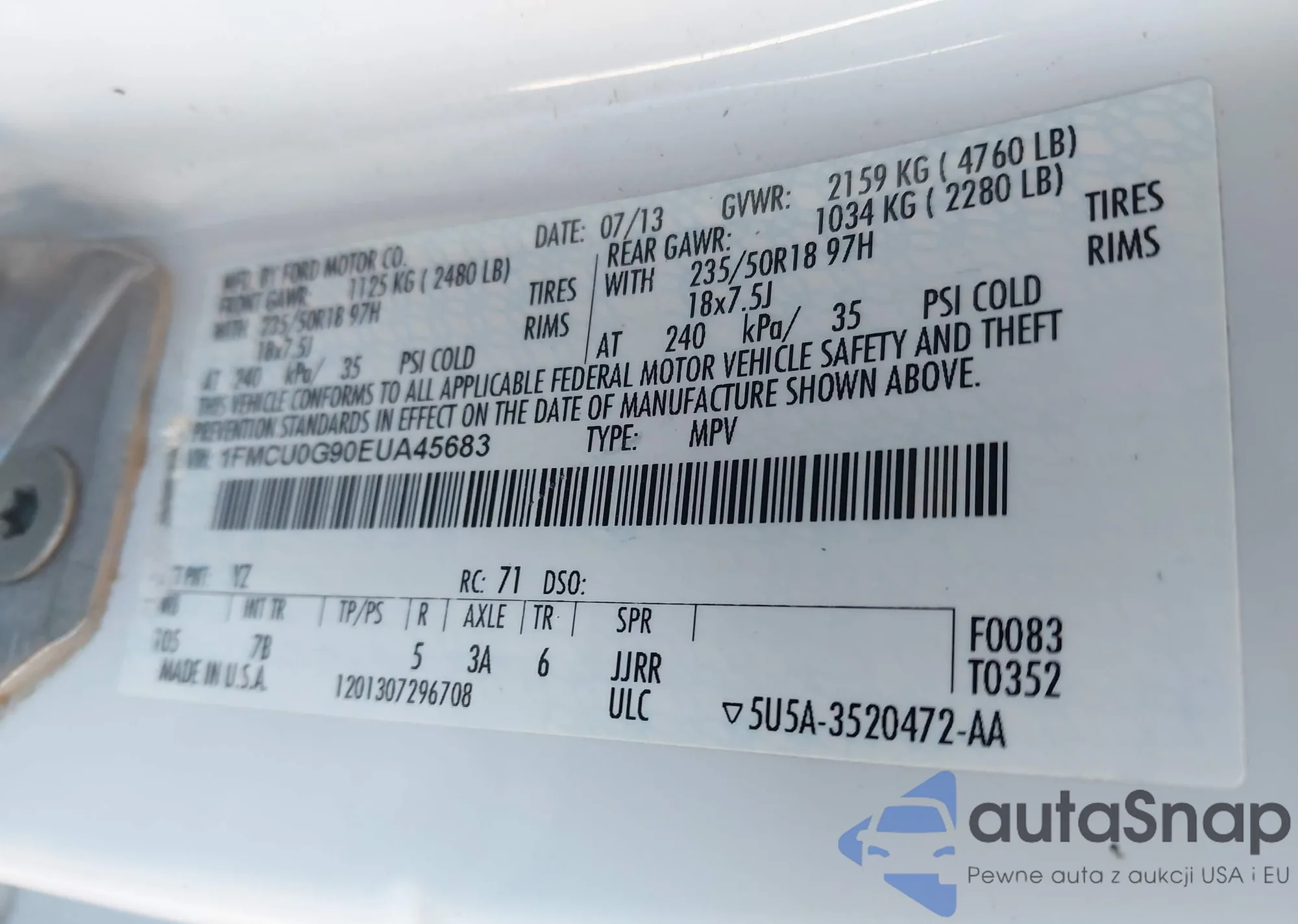 • VIN: 1FMCU0G90EUA45683