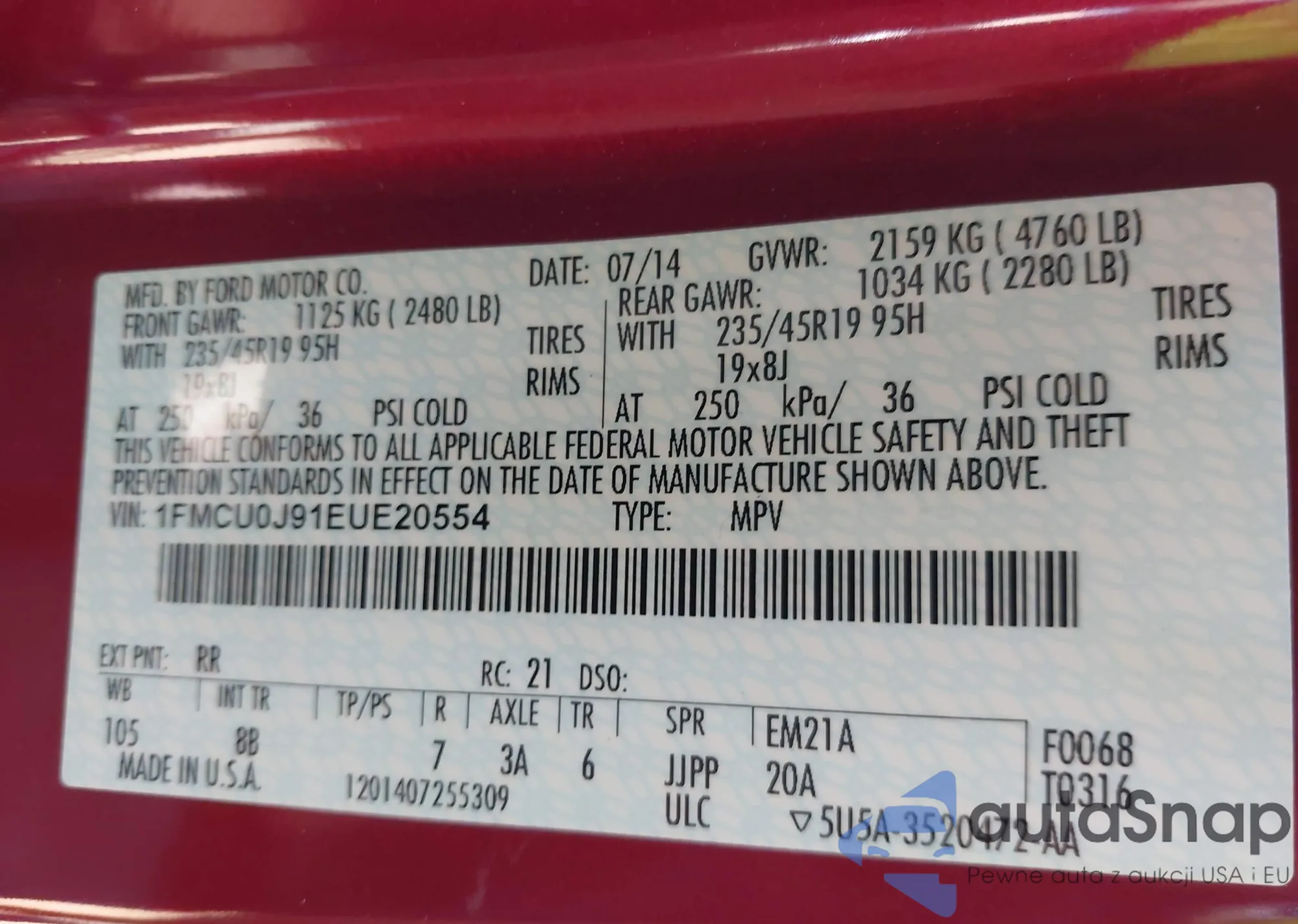 VIN: 1FMCU0J91EUE20554