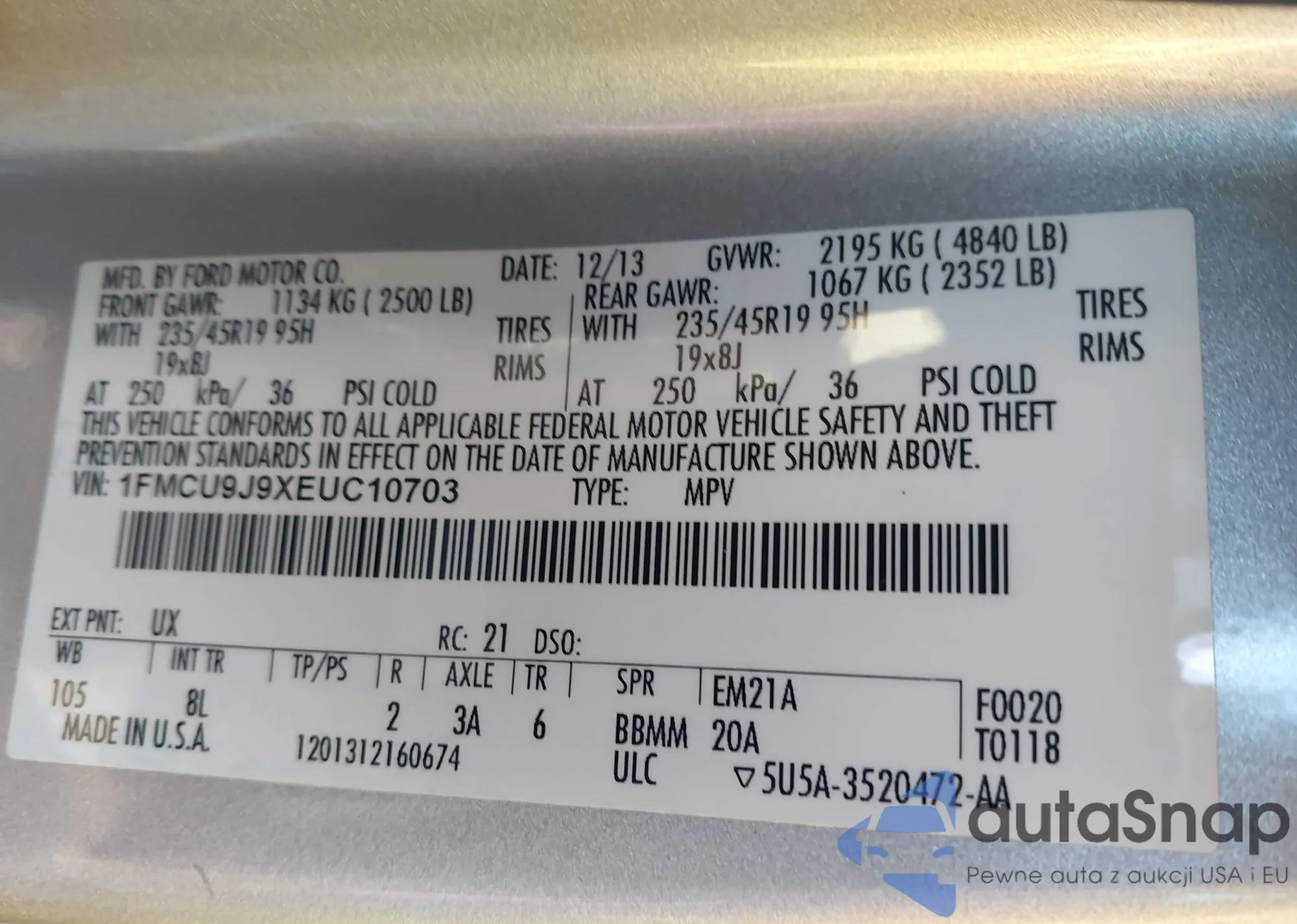 VIN: 1FMCU9J9XEUC10703
