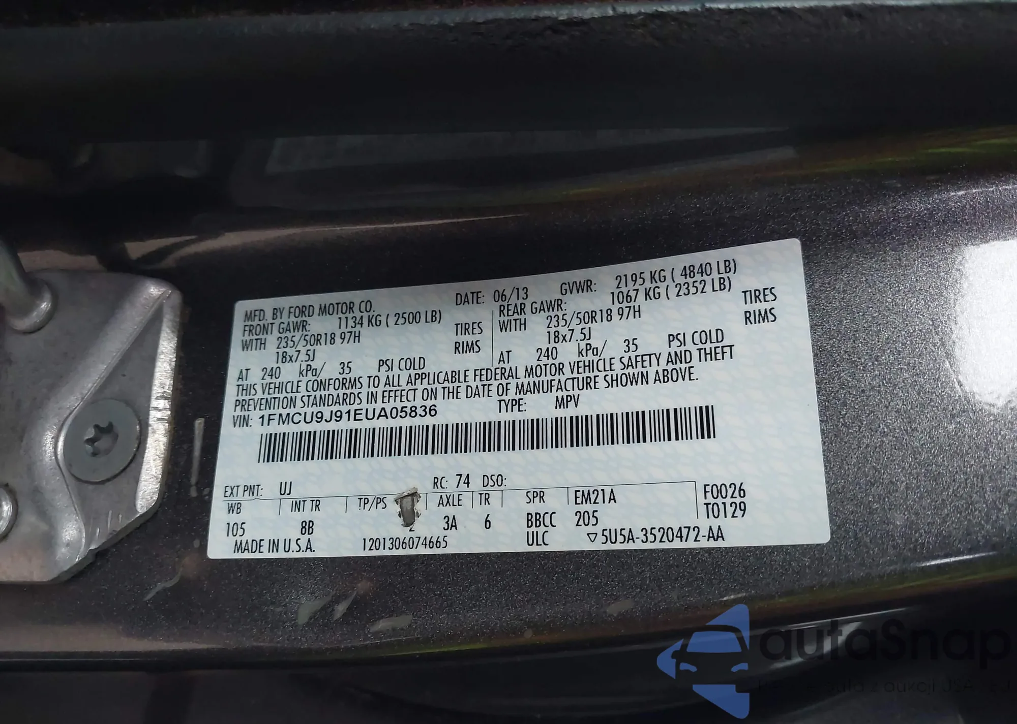 VIN: 1FMCU9J91EUA05836