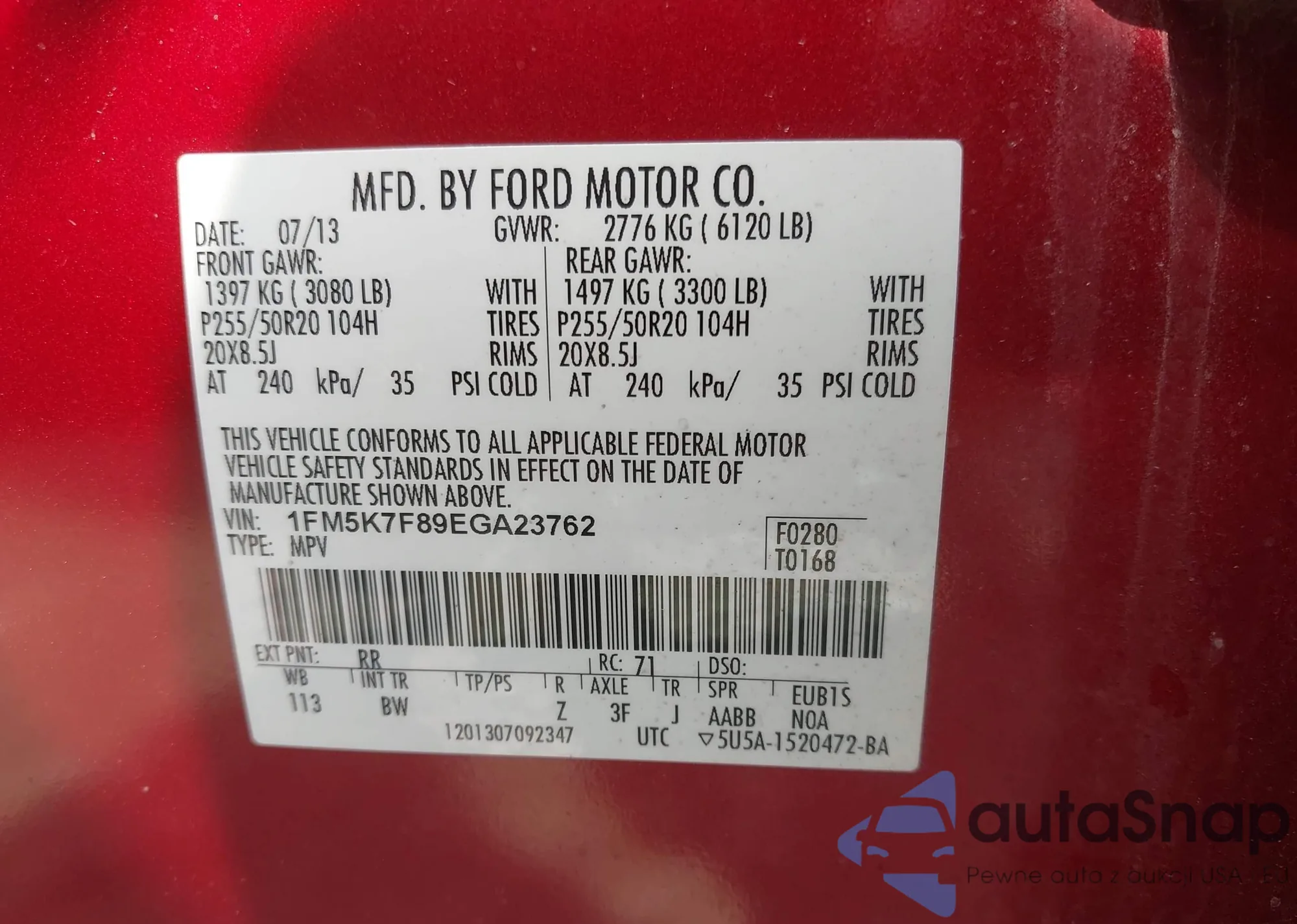 VIN: 1FM5K7F89EGA23762