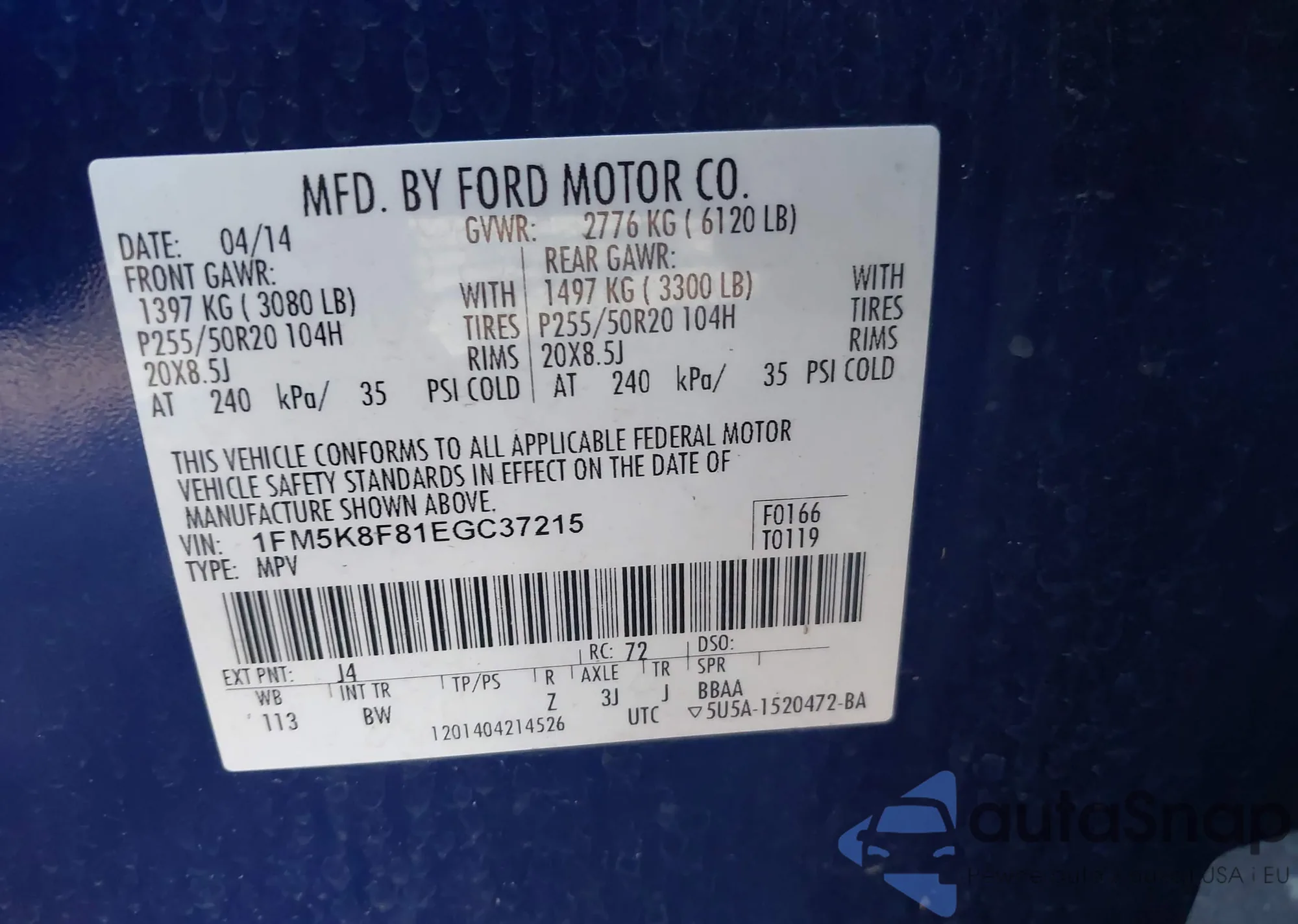 VIN: 1FM5K8F81EGC37215