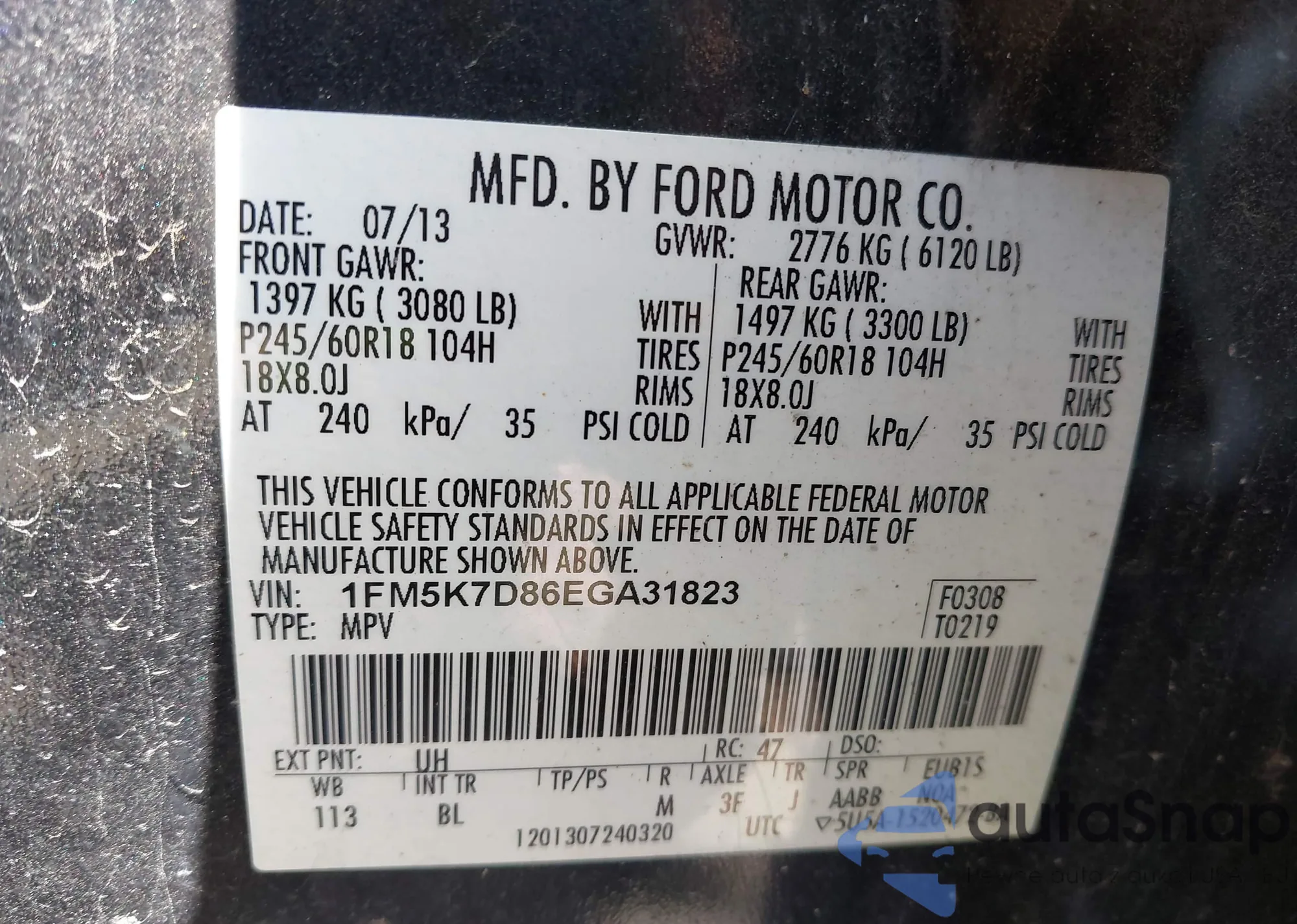 VIN: 1FM5K7D86EGA31823