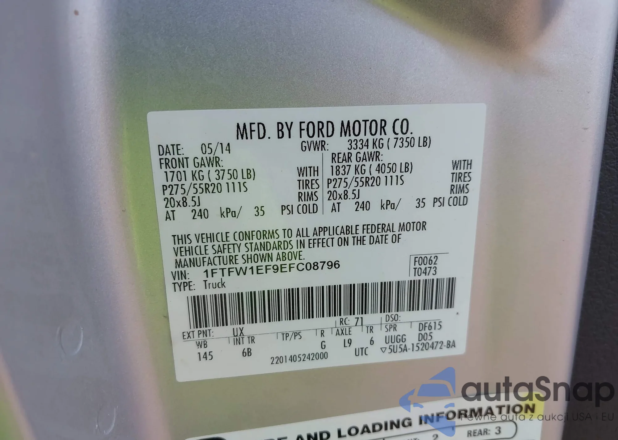 VIN: 1FTFW1EF9EFC08796