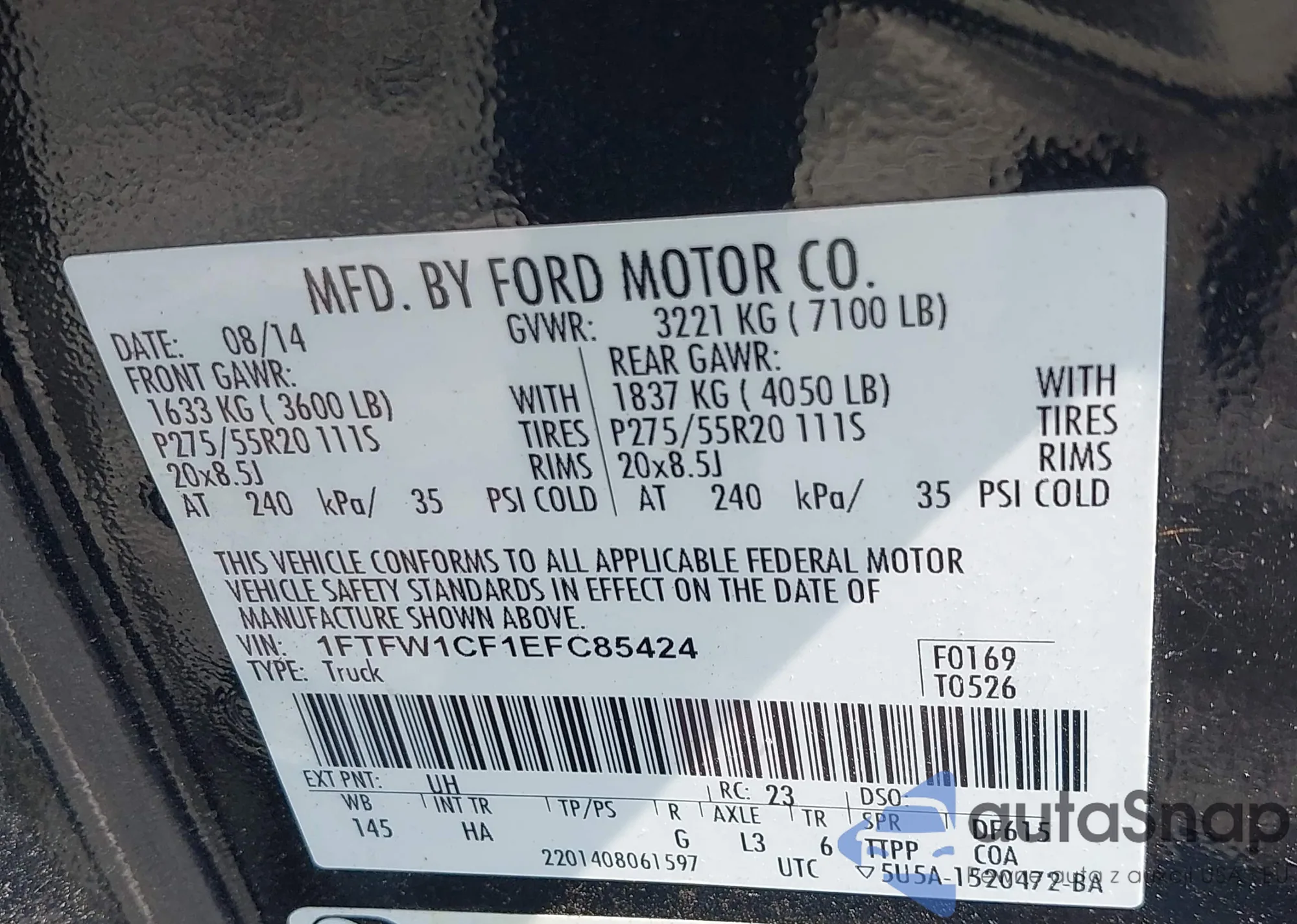 VIN: 1FTFW1CF1EFC85424