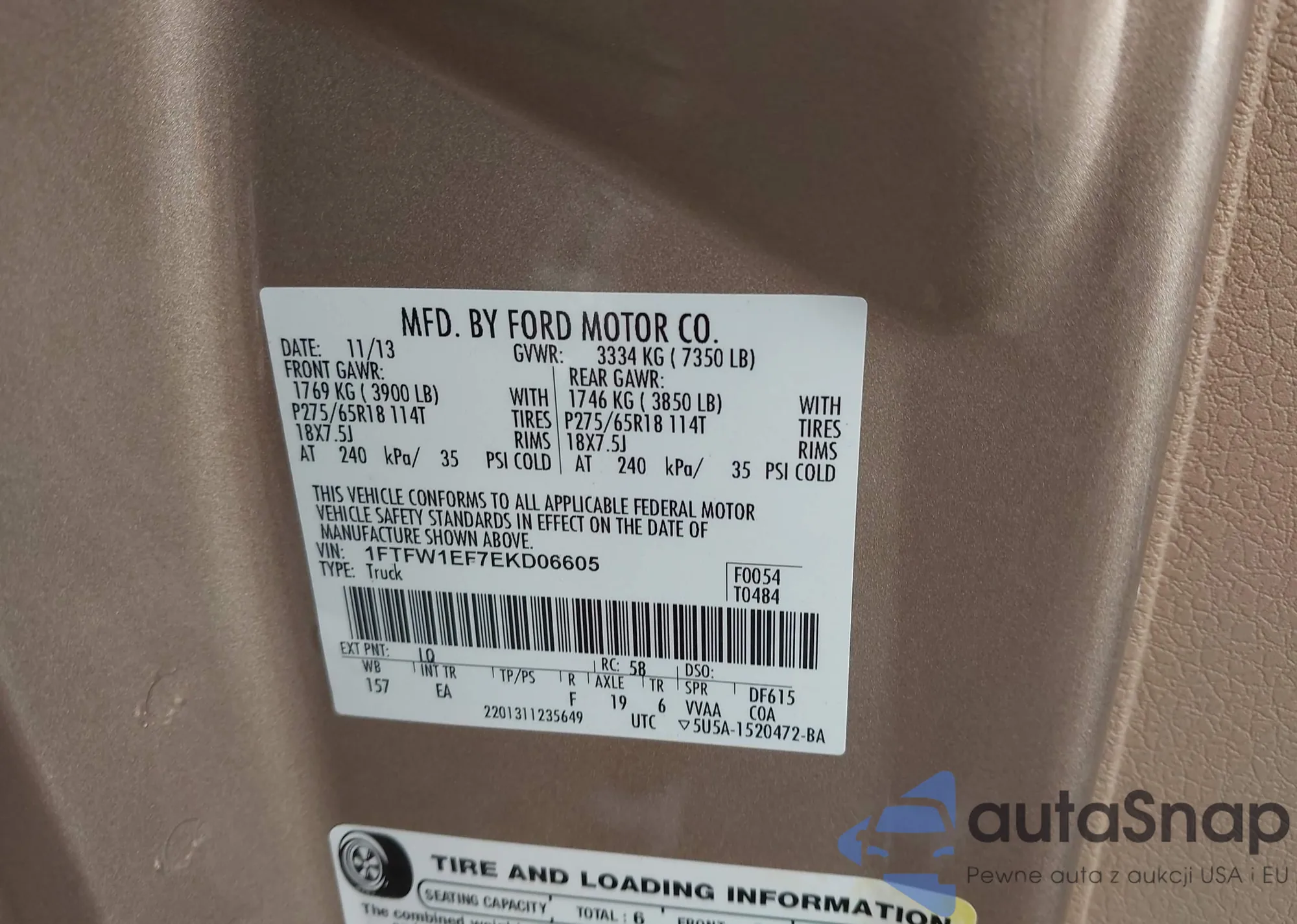 Samochód Ford F-150 2014 (VIN 1FTFW1EF7EKD06605) nie był wcześniej licytowany. Dokumenty są czyste, przebieg odpowiada lub jest niższy niż średnia rynku. Sprzedaje go firma ubezpieczeniowa – polecamy zakup. Dostawa do portu zajmie ok. 6–8 tygodni.